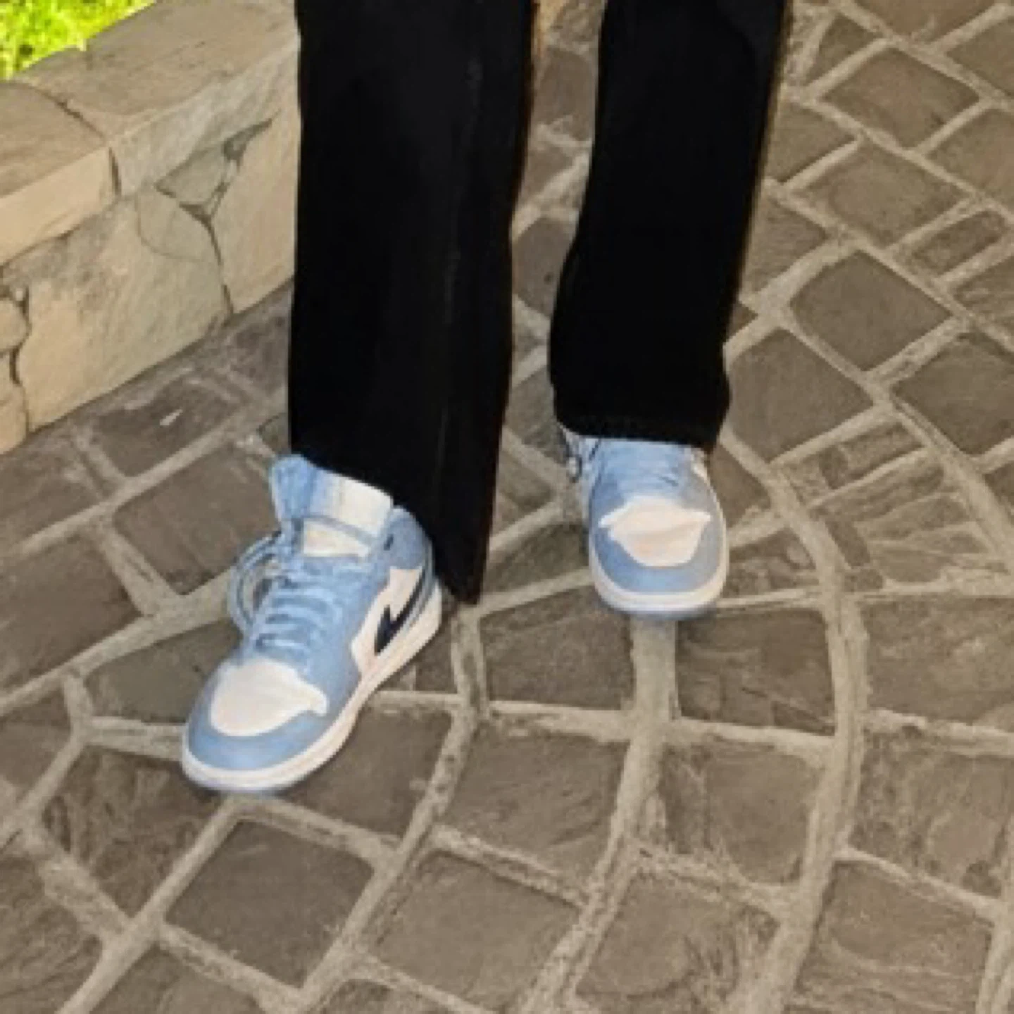 Classic high-top sneakers in a light smoke blue and white colourway. Lace-up closure with rubber sole. These shoes are ready for everyday wear!