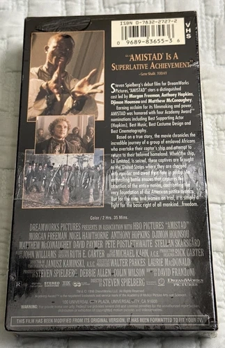 Steven Spielberg's "Amistad" stars Morgan Freeman, Anthony Hopkins, Djimon Hounsou and Matthew McConaughey. Earning acclaim for its filmmaking and power, AMISTAD was honored with four Academy Award™ nominations including Best Supporting Actor (Hopkins), Best Music, Best Costume Design and Best Cinematography. Based on a true story, the movie chronicles the incredible journey of a group of enslaved Africans who overtake their captor's ship and attempt to return to their beloved homeland. When the ship, La Amistad, is seized, these captives are brought to the United States where they are charged with murder and await their fate in prison. An enthralling battle ensues that captures the attention of the entire nation, confronting the very foundation of the American justice system. But for the men and women on trial, it is simply a fight for the basic right of all mankind...freedom.