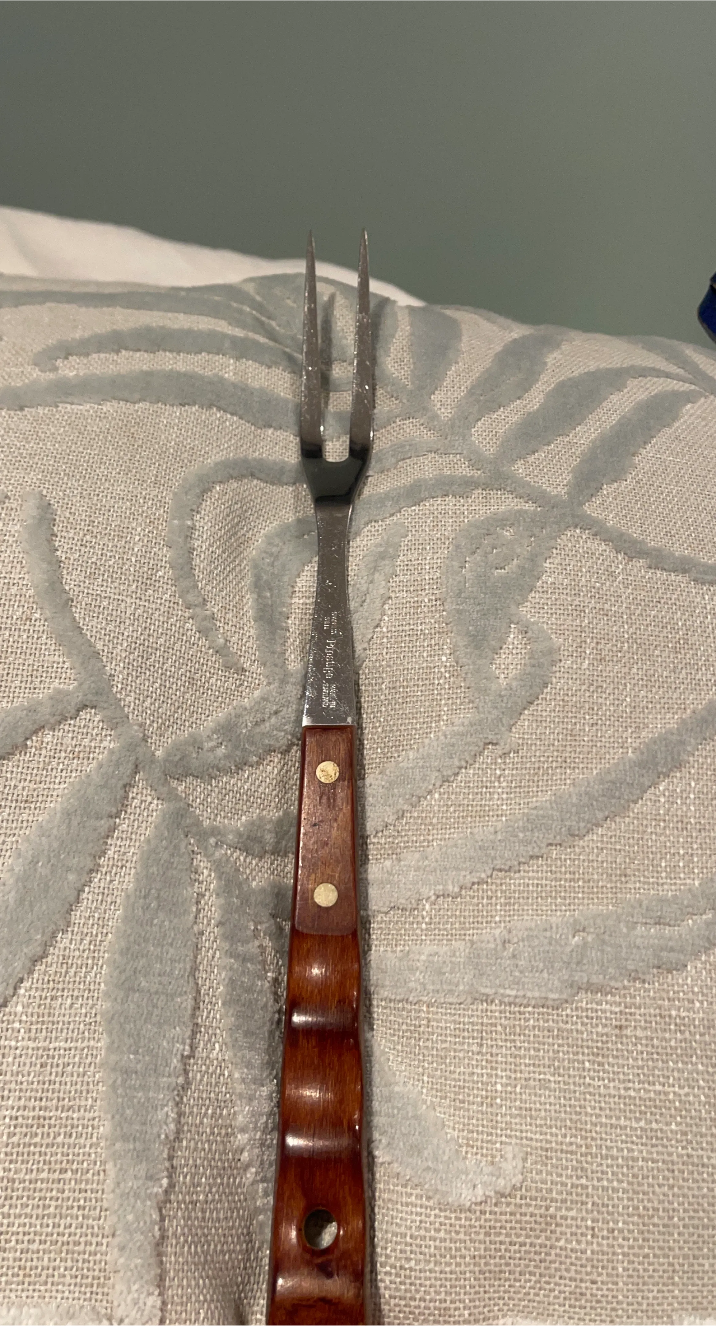 Selling a Prestige stainless steel carving fork with a wooden handle. It's in great condition and perfect for carving up your favourite roasts. Made in England!