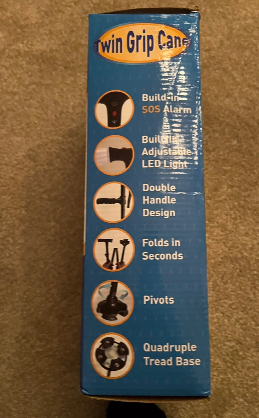 Twin Grip Cane - Folding Cane with LED Light and SOS Alarm