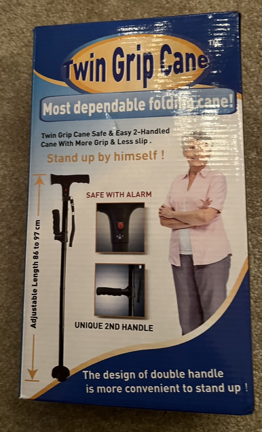 Twin Grip Cane - Folding Cane with LED Light and SOS Alarm