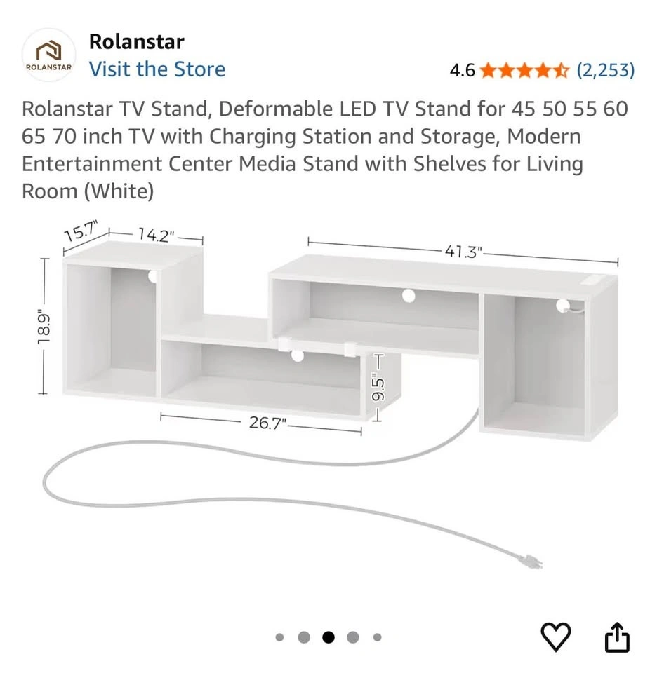 Clean white modular TV stand with multiple cube storage compartments. Great for holding your TV, books, and decor. Has inbuilt LED lights and a charging station. Super versatile for any living space. Pick up at Mavis Rd & Central Pkwy W. Cash or e-transfer accepted.