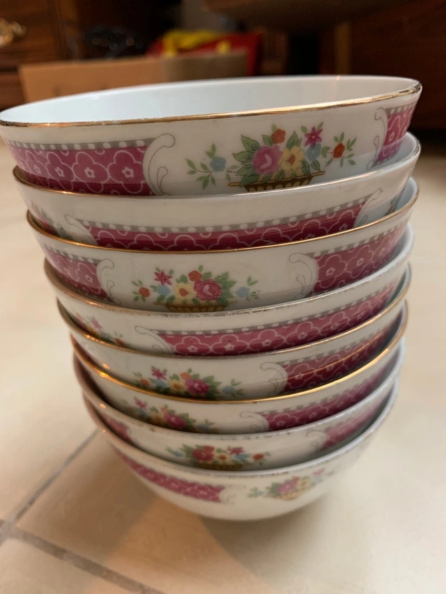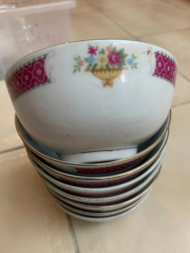 Rice bowls set of 8, good condition all but 1 bowl some chipping see last photo. Price is firm. PU location : MISSISSAUGA, Colonial Dr & Burnhamthorpe Rd W.