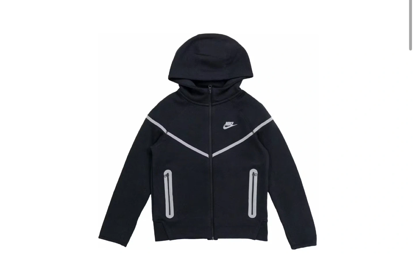 Black Nike Tech Fleece full-zip hoodie with reflective accents. It's a size medium. This hoodie is great for everyday wear.