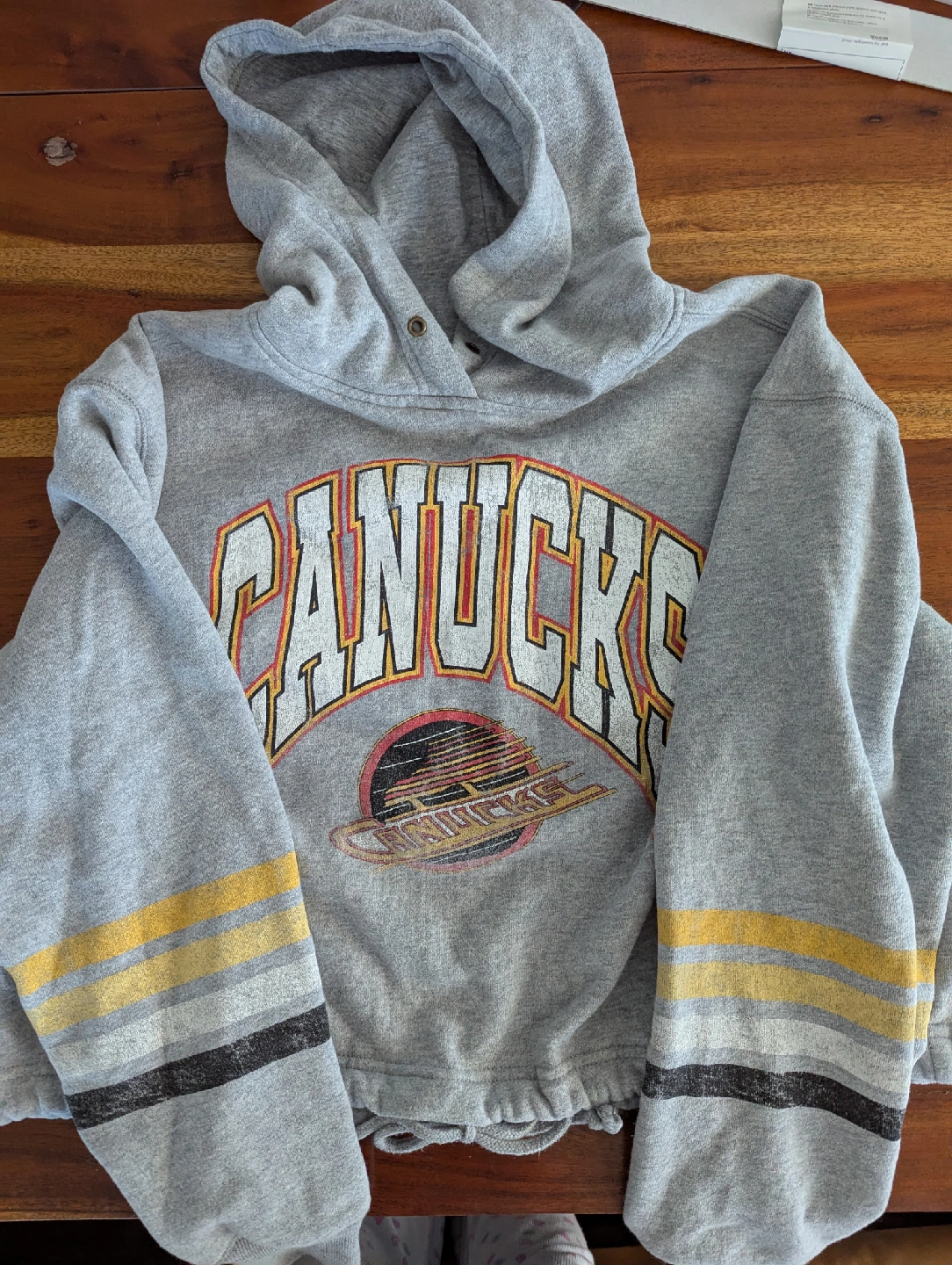 Buy & SellWomen's Vancouver Canucks '47 Gray Bennett Pullover HoodieWomen's Vancouver Canucks '47 Gray Bennett Pullover Hoodie$35Size small. Super cute cropped Canucks hoodie. Very soft and cosy. Bought for $100 ConditionGoodSizeSWHERE TO MEETEldorado MewsView MapSELLERverifiedBrittanyRenfrew Collingwood1244 reviews0 chats·0 favorites·18 viewsSEND CHAT TO SELLERHi Brittany! I’m interested in your listing.Hi Brittany! I’m interested in your listing.Get the Karrot app to chatSign In to chat
