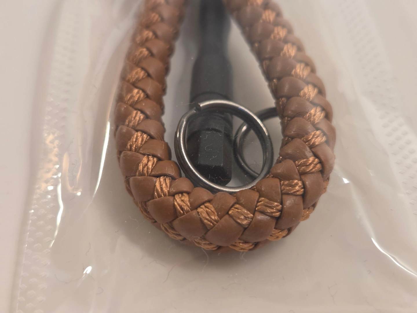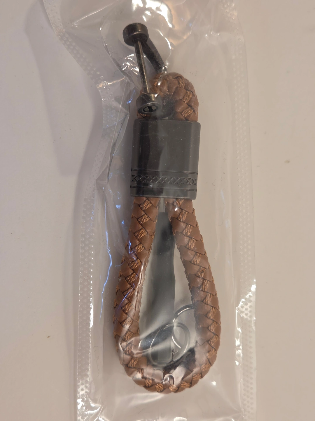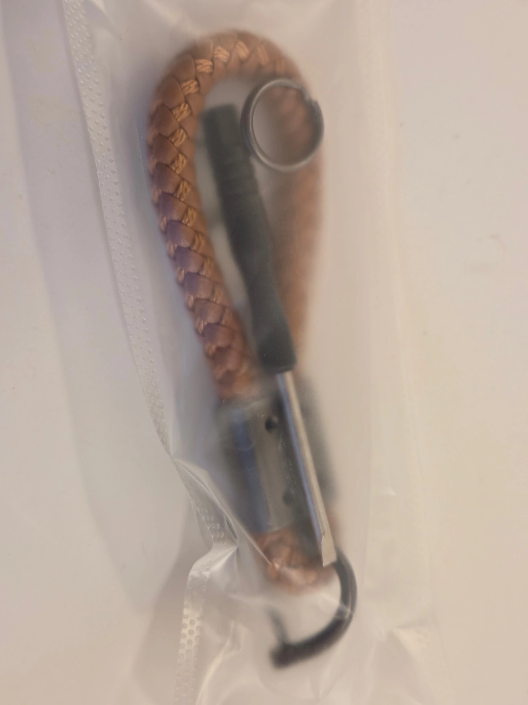 Fresh tan braided keychain with a secure U-shackle – stylish and functional for car keys or house keys. Comes with a mini flathead screwdriver for the screw-pin.