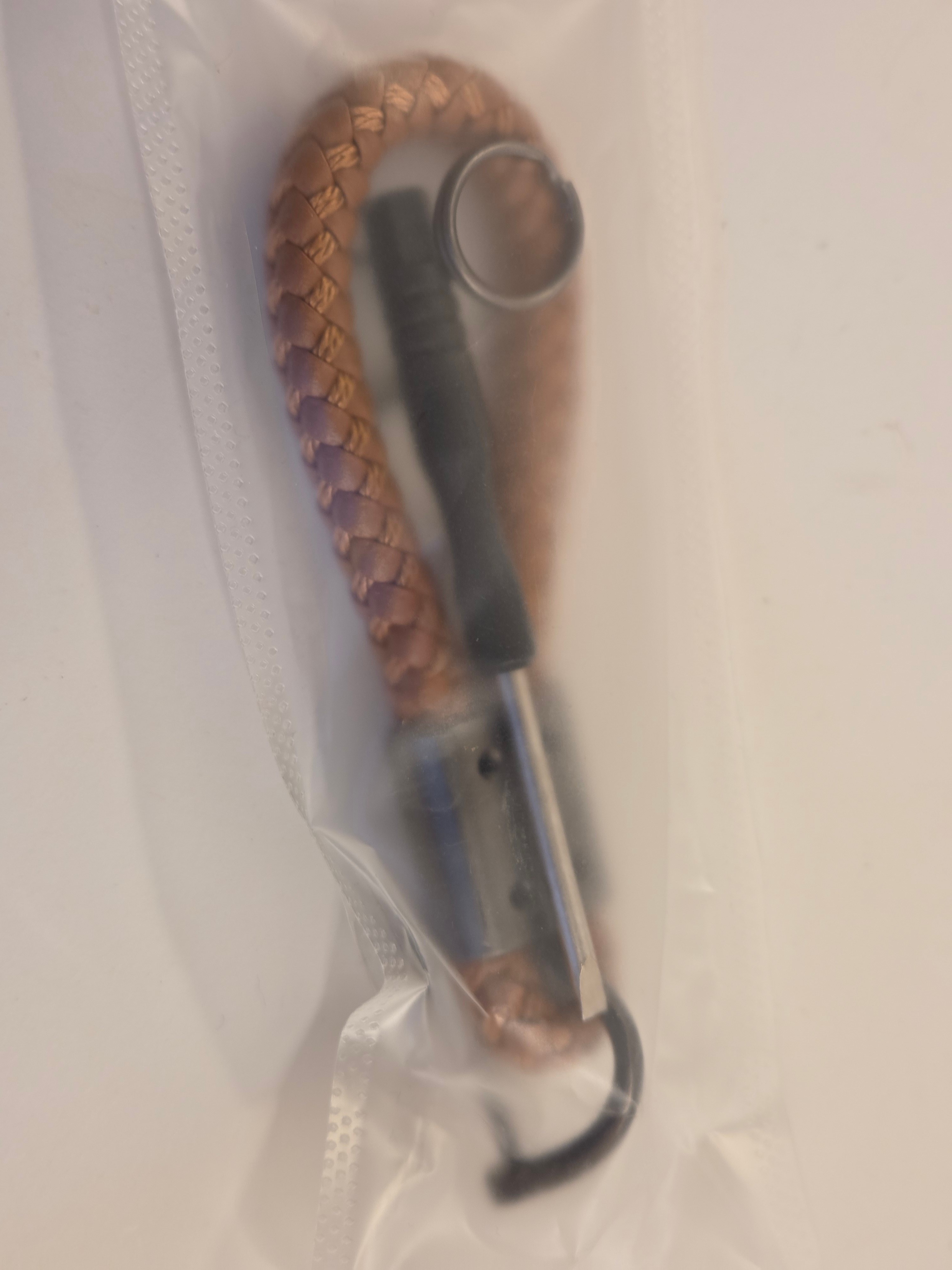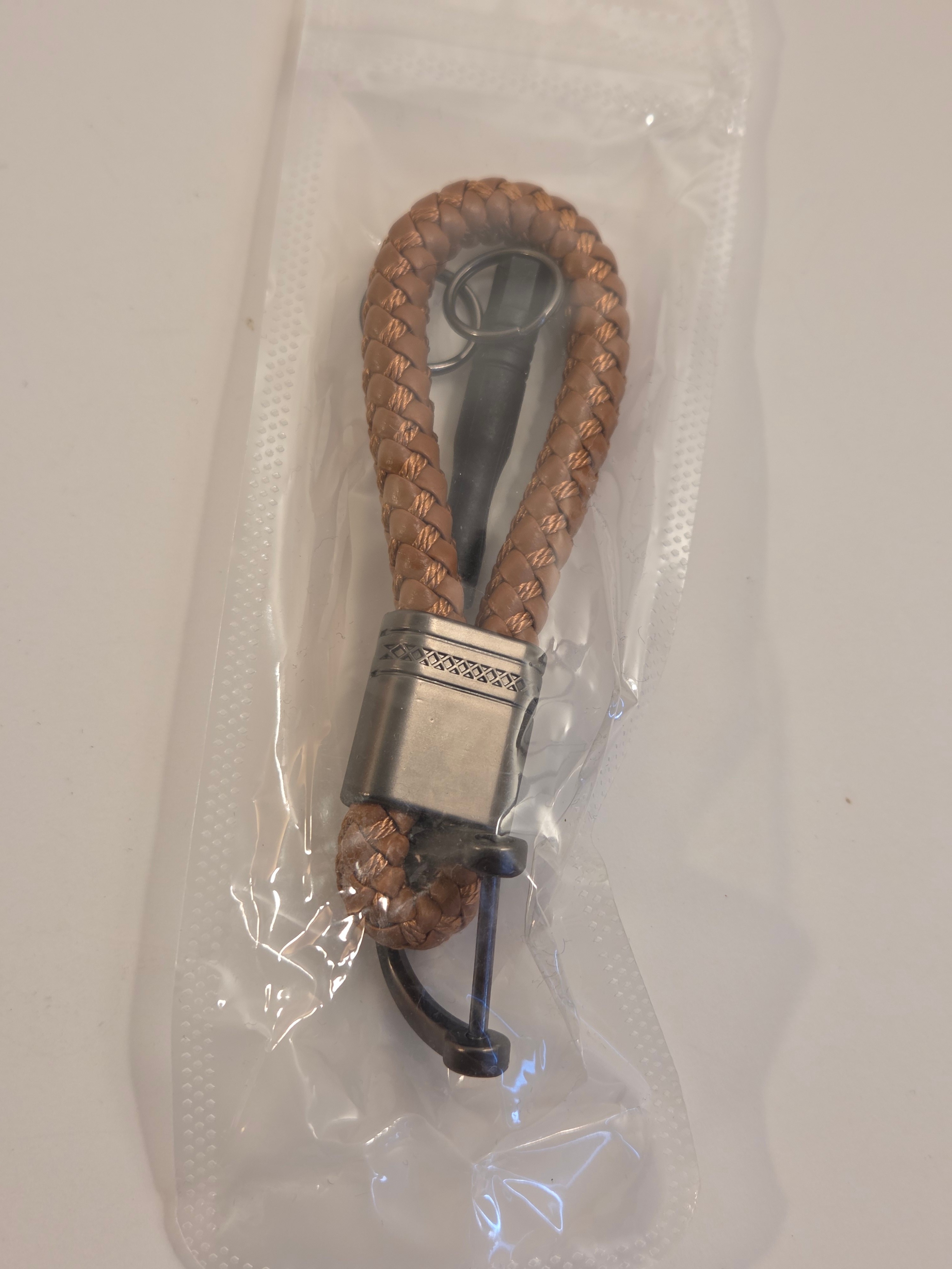 Fresh tan braided keychain with a secure U-shackle – stylish and functional for car keys or house keys. Comes with a mini flathead screwdriver for the screw-pin.
