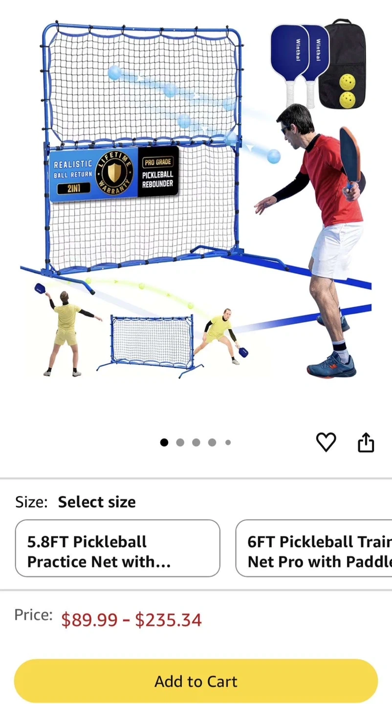 I'm selling a 5.8FT Pickleball Practice Net. Its really big and It's still in its original packaging! This net is designed for realistic ball return and is a pro-grade pickleball rebounder. Perfect for training and improving your pickleball skills