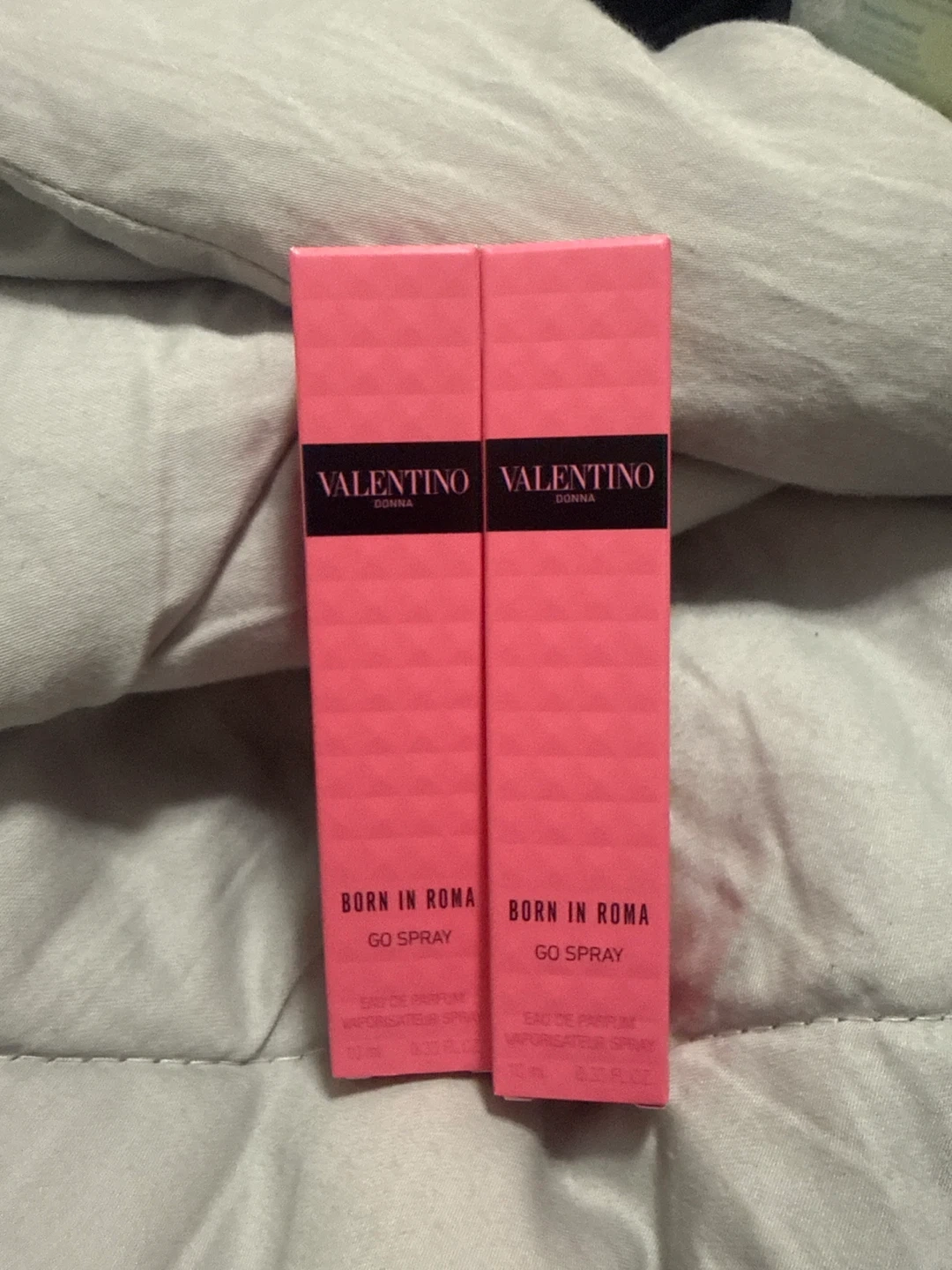 Two Valentino Donna Born In Roma Go Spray Eau de Parfum bottles. Each bottle is 10ml. It's a spray type. This set is perfect for travel!
