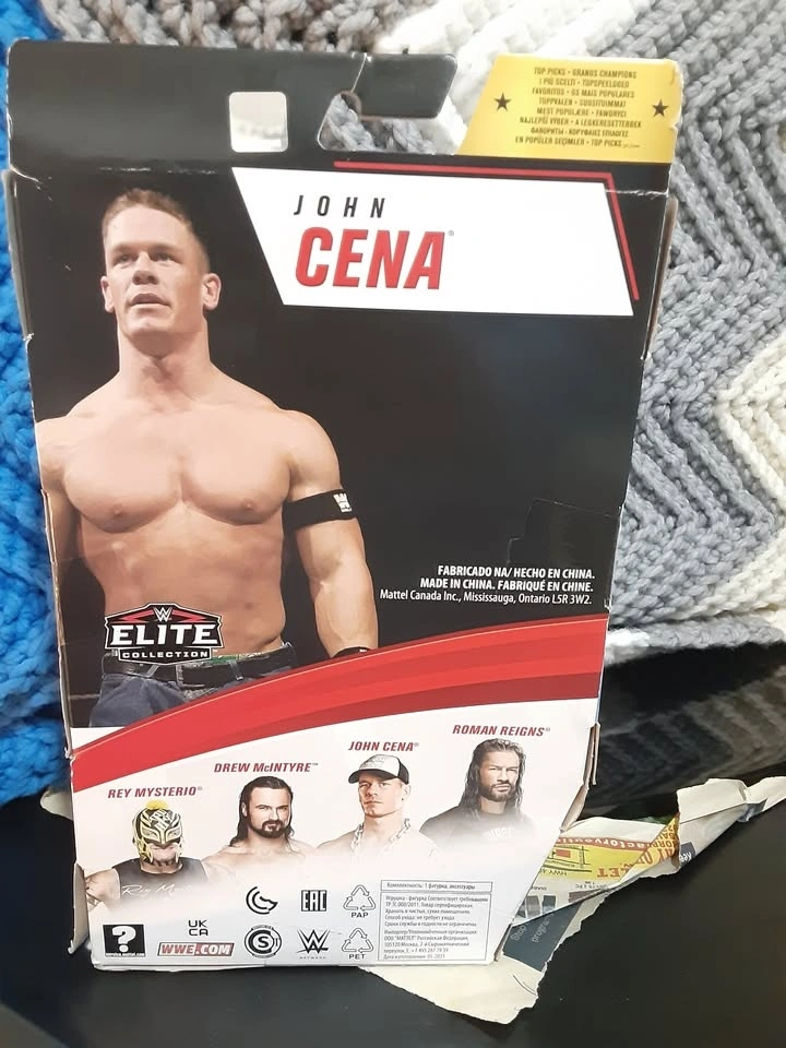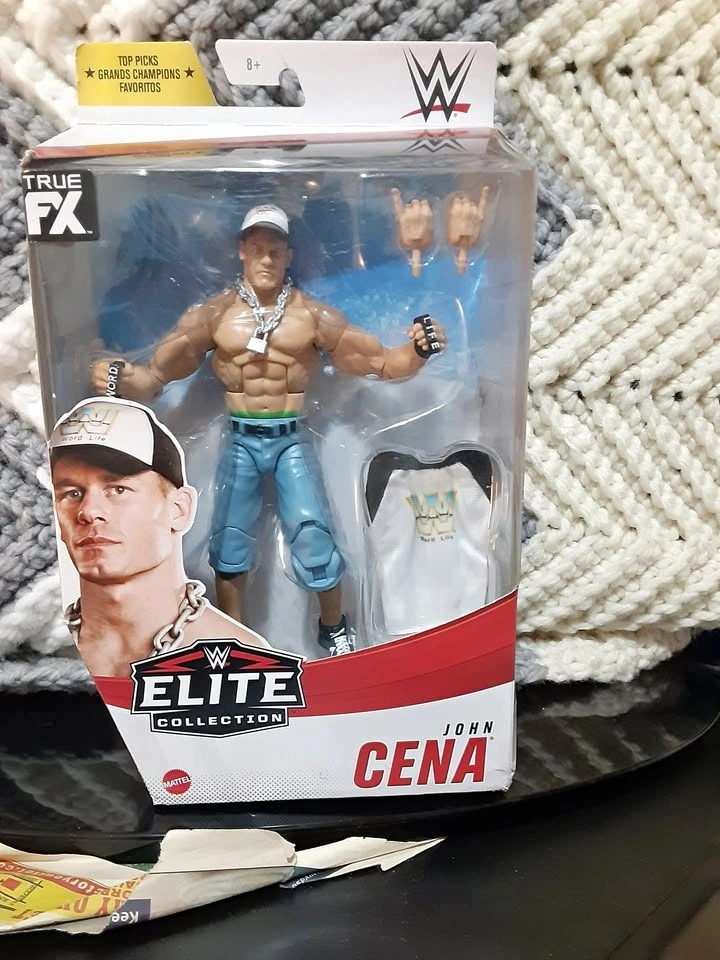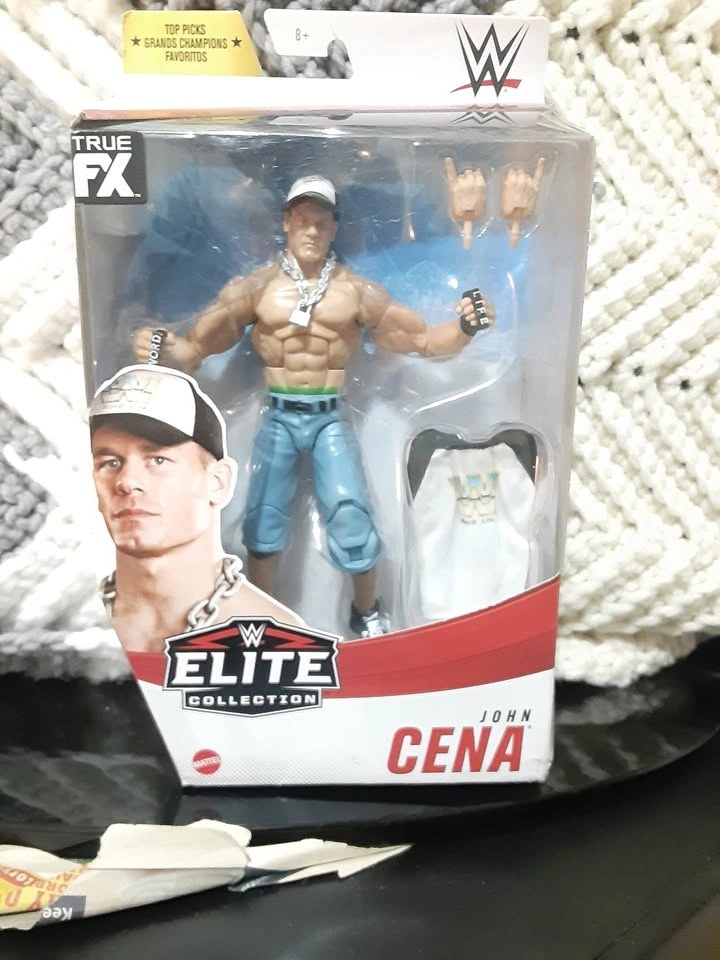 WWE Elite John Cena 6-inch Action Figure with Deluxe Articulation for Pose and Play WWE Top Picks Elite John Cena 6-inch Action Figure with Deluxe Articulation for Pose and Play, Life-Like Detail, Authentic Ring Gear & Accessory John Cena action figure comes in approximately 6-inch (15.24 cm) pose and play scale. Features include deluxe articulation, TrueFX facial detailing for life-like authenticity, WWE ring gear and accessory. Includes : Action Figure, 2 Hand Gestures,Facial variation, Tshirts and accessories Brand New - UnOpened Box Packed Best gift for Kids Brand new with Box. Retail Amazon / Walmart selling for $60 + Taxes Pickup Only NOT FREE - DM for Prices.