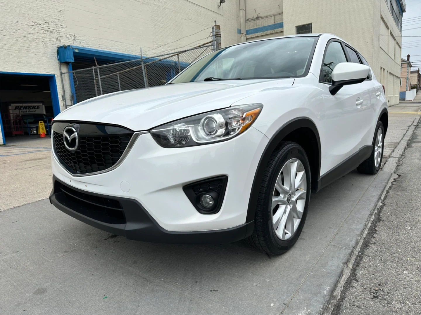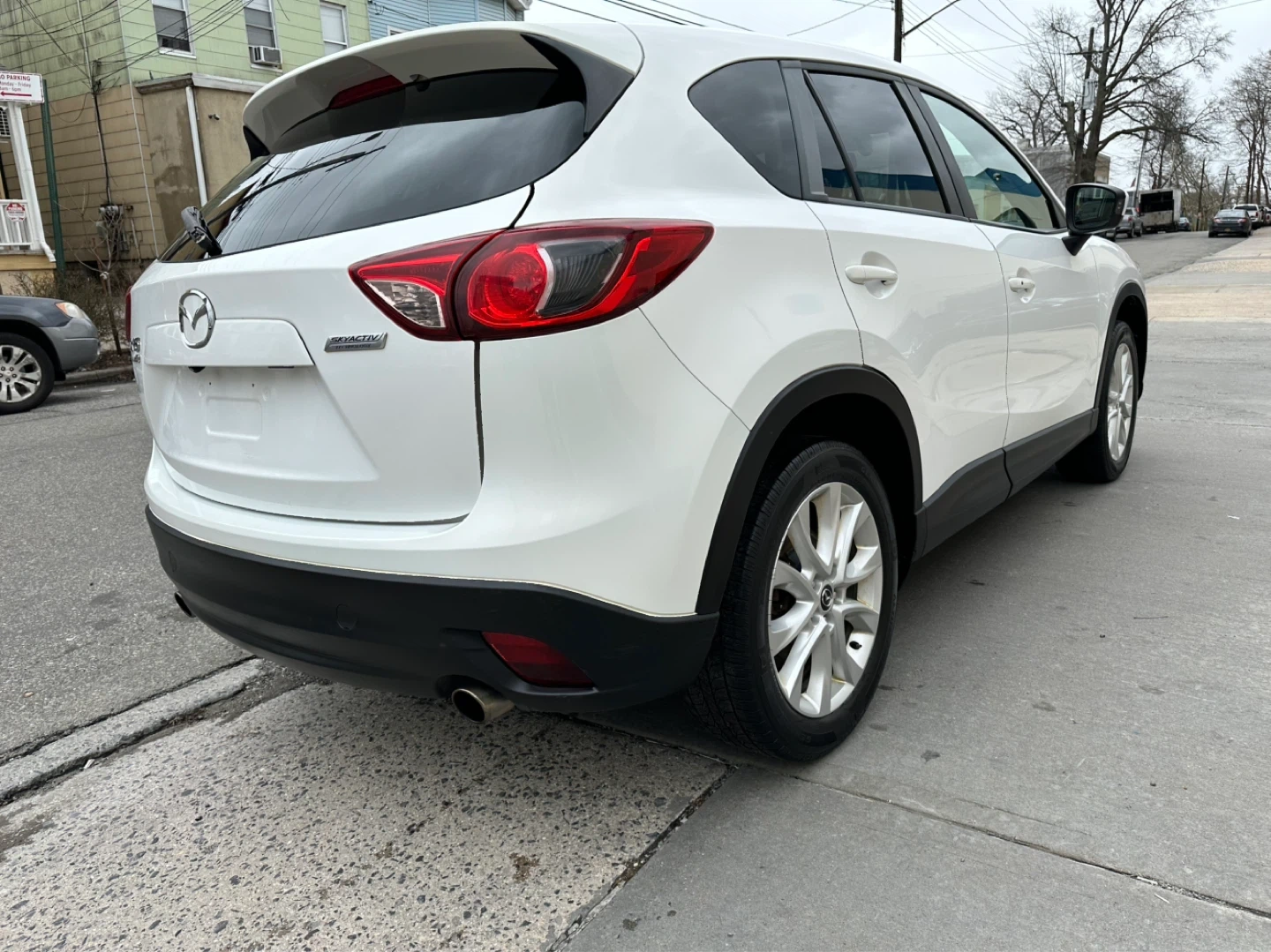 This is a white Mazda CX-5 AWD. It's a 4-door SUV with a black interior. Features a smooth-riding suspension.