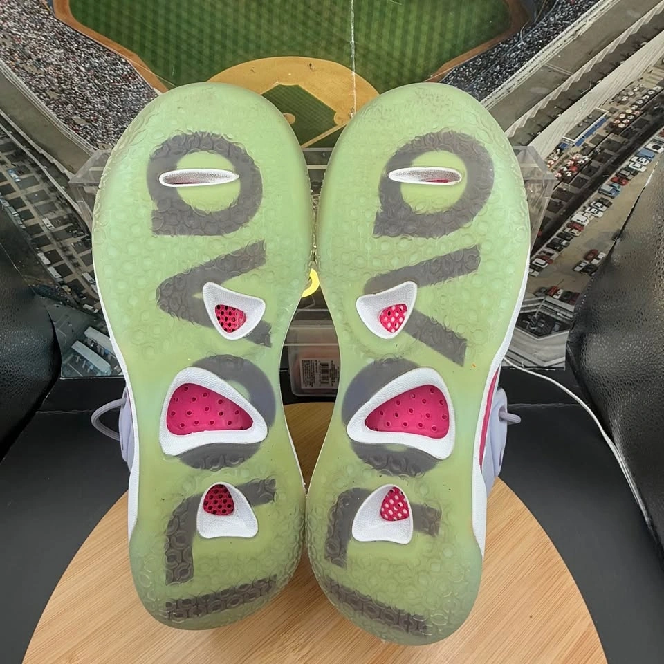 In good preowned condition. Women’s Sz 10. No box. Has light outsole wear. Has some small cosmetic flaws (See Pics).