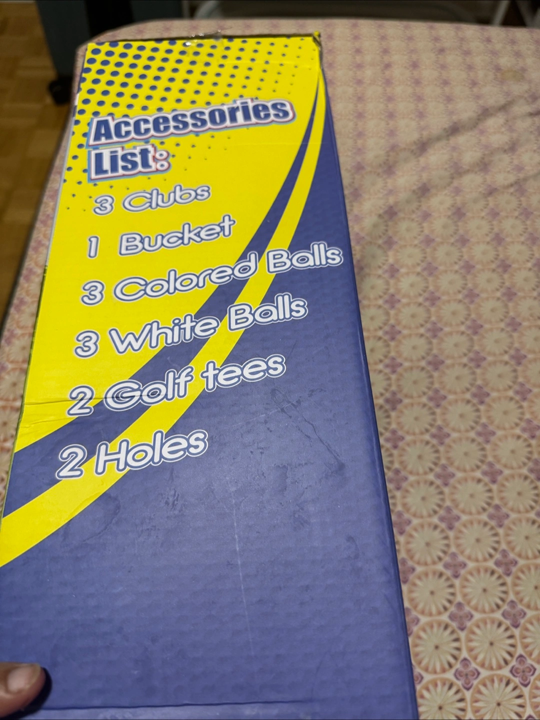 This is a Liberry kids golf clubs set for outdoor and indoor play. It includes 3 clubs, 1 bucket, 3 colored balls, 3 white balls, 2 golf tees, and 2 holes. It's recommended for ages 18 months and up. This toy encourages hands-on ability, creativity, teamwork, and friendship. It's a fun starter set for young golfers!