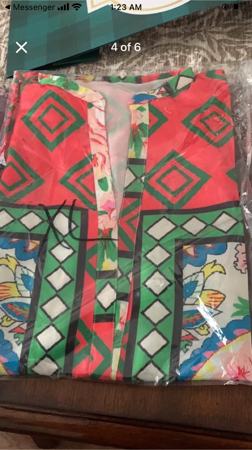 Pack of women's blouses featuring vibrant floral and geometric patterns. Assorted styles and sizes available. Lightweight fabric.