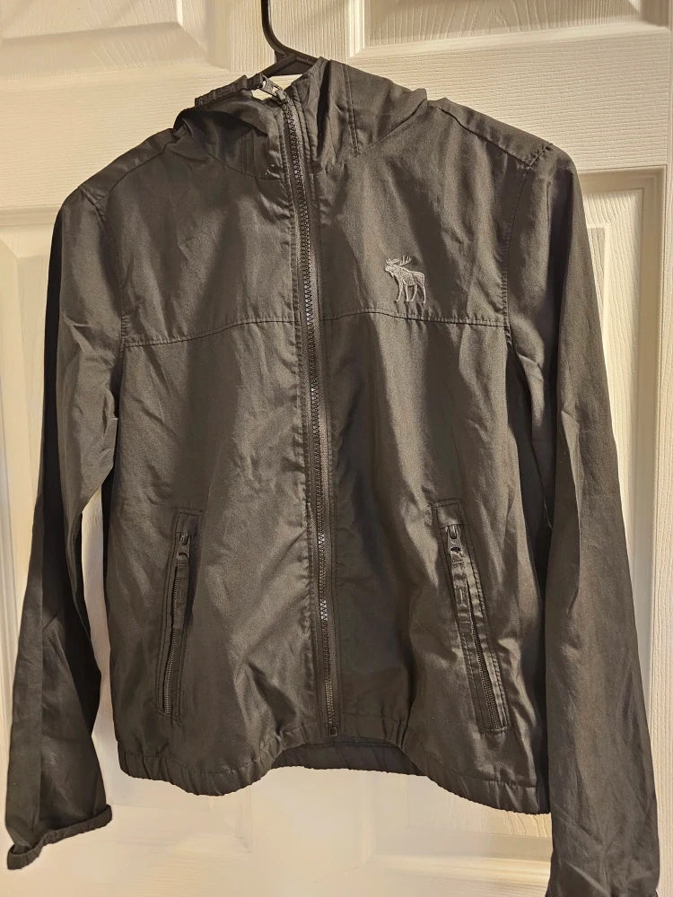 Here's a black hooded wind breaker jacket from Abercrombie Kids in size M (12)! It's never worn and in great shape . But can fit to 6 till 10 year old kids