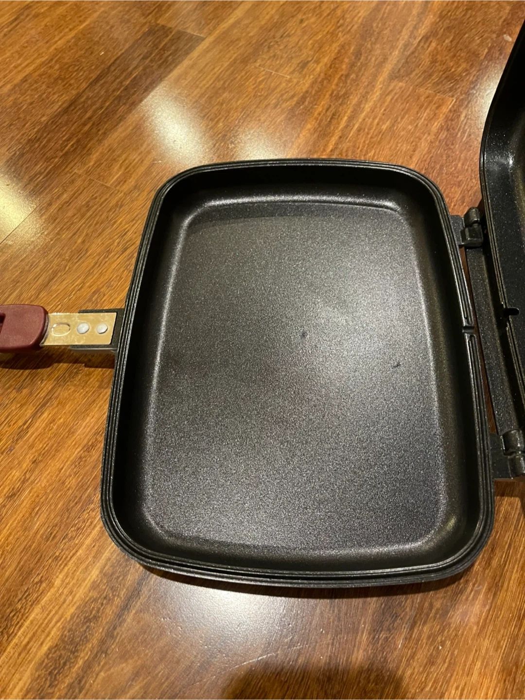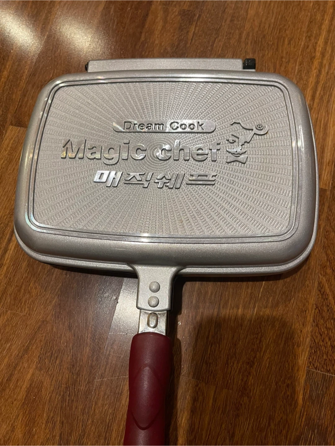 This is a Magic Chef double-sided grill pan. It's perfect for grilling sandwiches or other foods on both sides at once. The non-stick surface makes cooking and cleanup a breeze! No oil needed