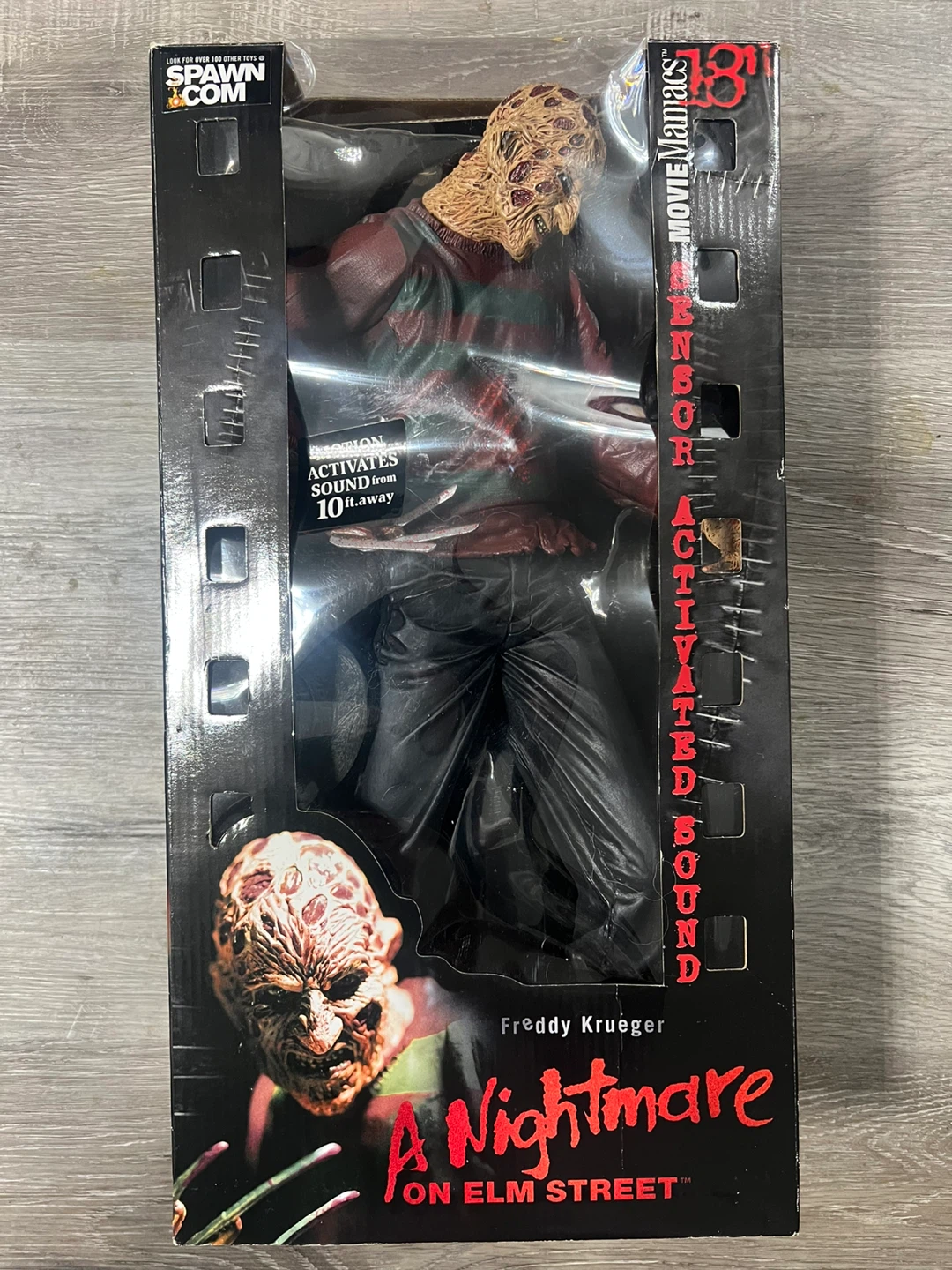 Large size .This is a Movie Maniacs action figure of Freddy Krueger from A Nightmare on Elm Street. It features sound activation from 10 ft. away. It's a collectible item for fans of the horror franchise.