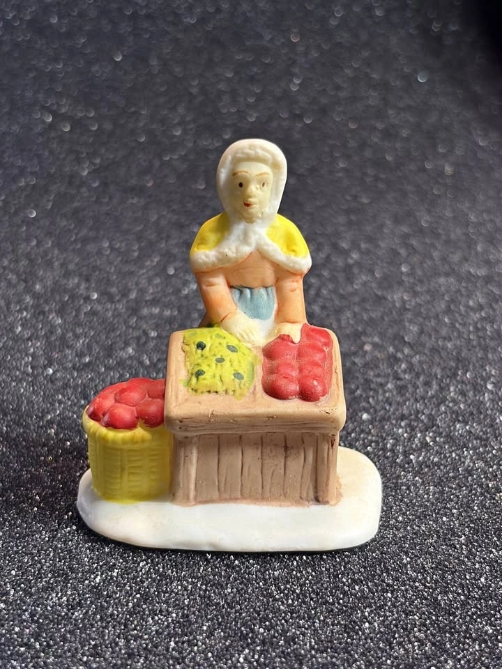 Vintage Christmas village figurine of a Victorian Woman Market Vendor in great condition.