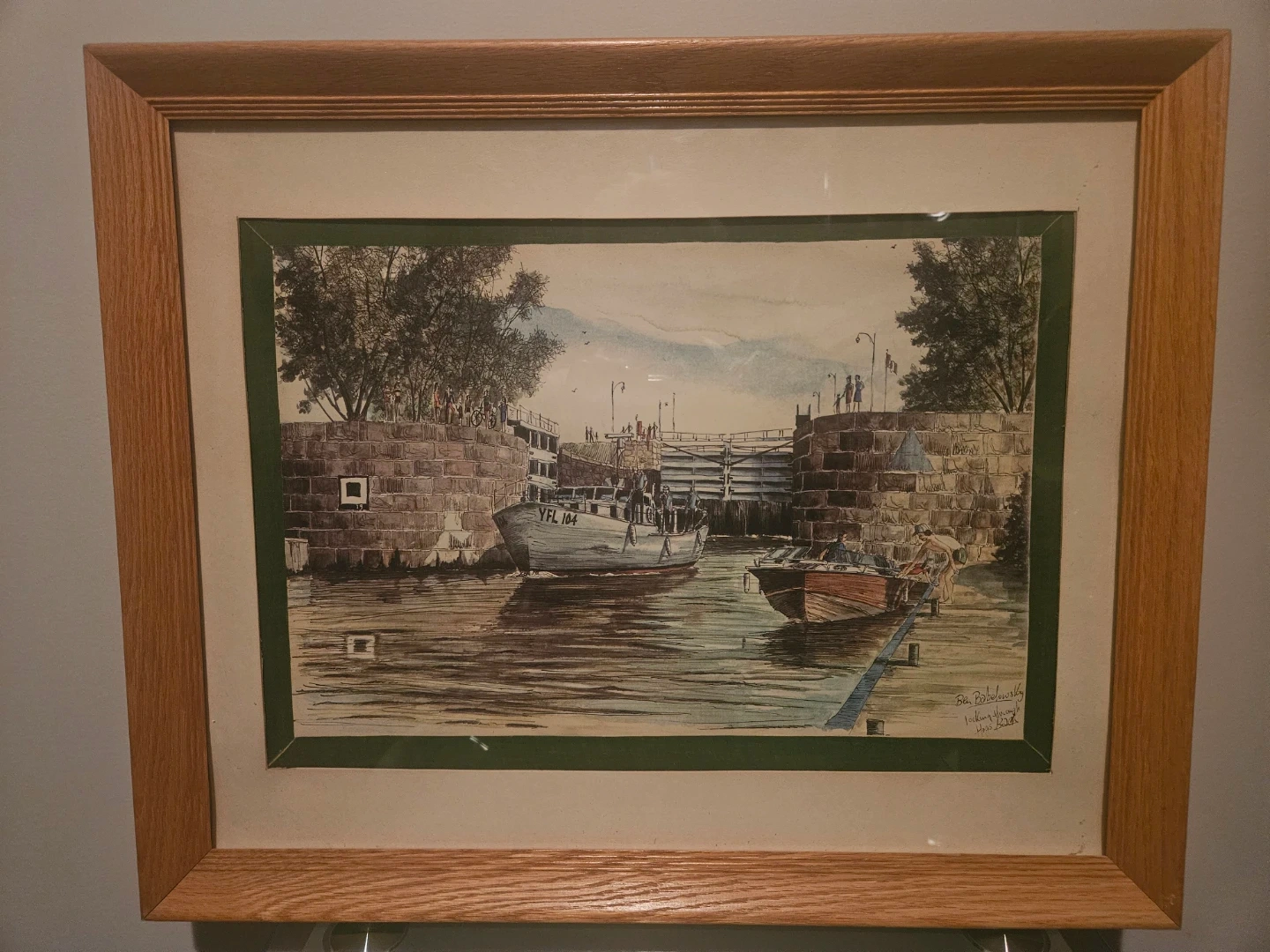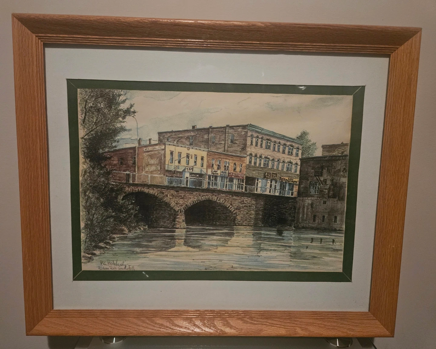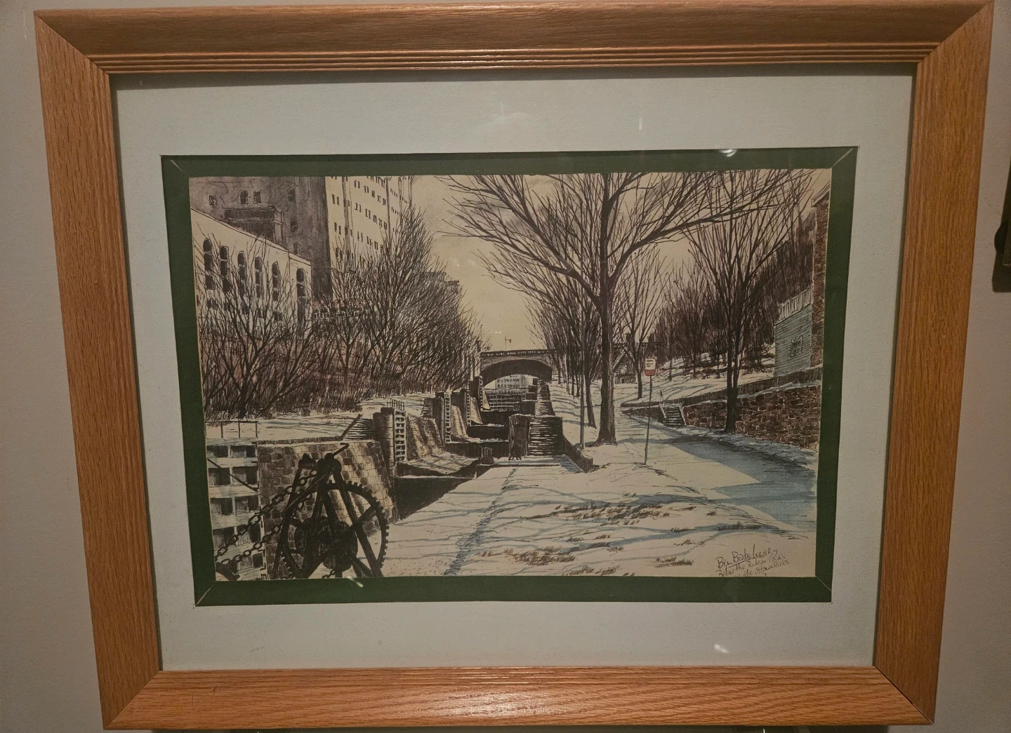 6 framed copies of Rideau River - artist Ben Babelowsly The artwork is presented in a light oak wood frames.