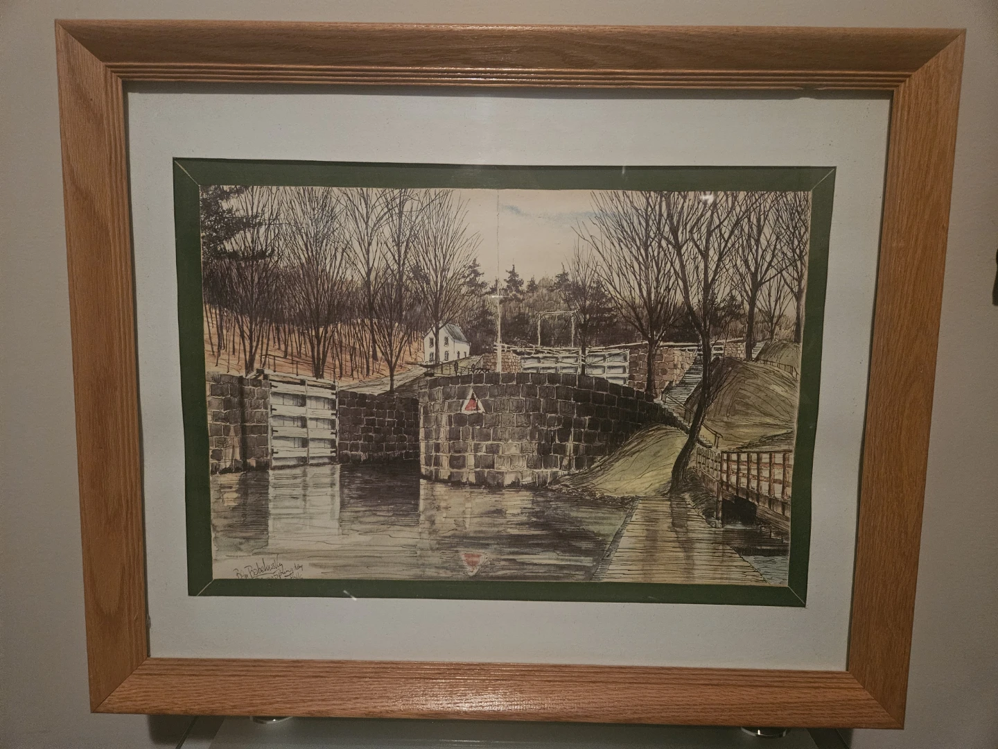 6 framed copies of Rideau River - artist Ben Babelowsly The artwork is presented in a light oak wood frames.
