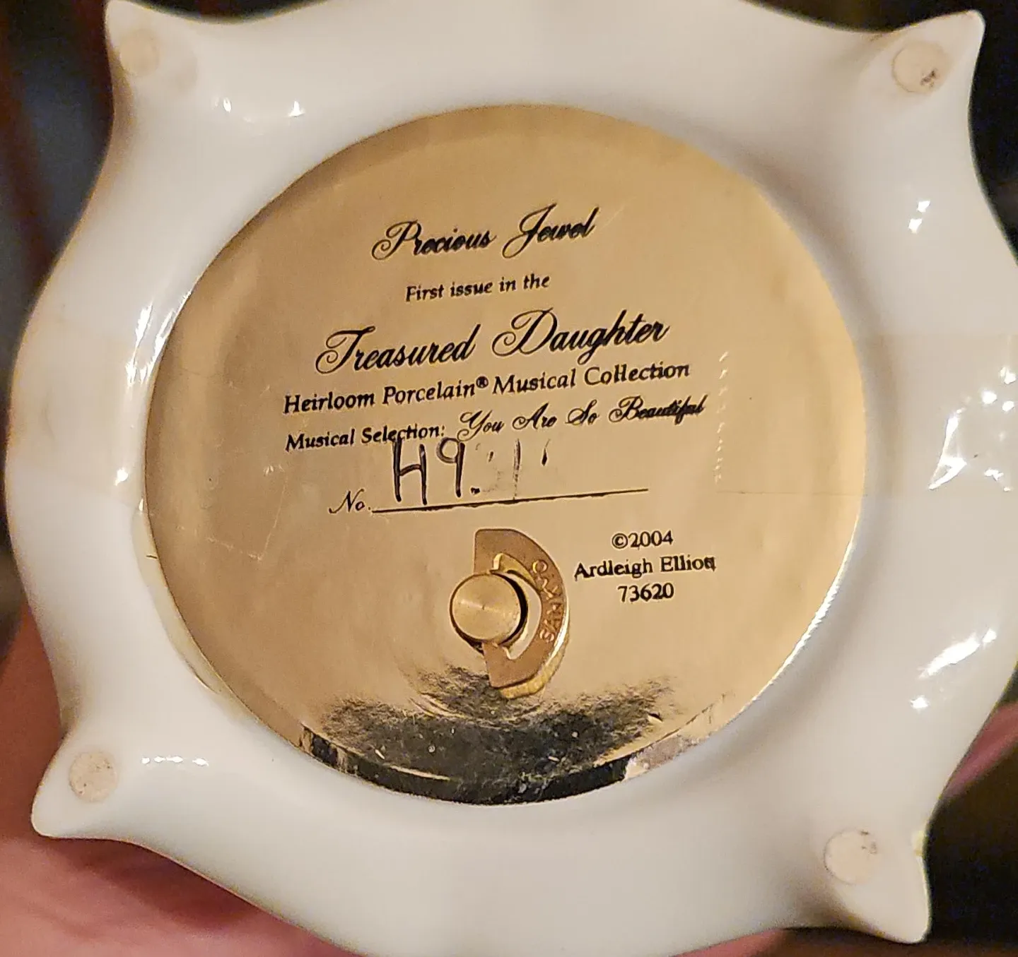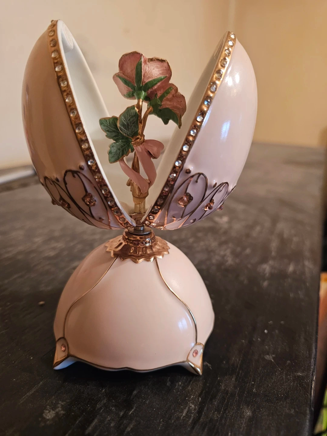 Heirloom Porcelain Musical Collection egg, first issue in the Treasured Daughter series. Musical selection is "You Are So Beautiful". This decorative piece is ideal for gifting.