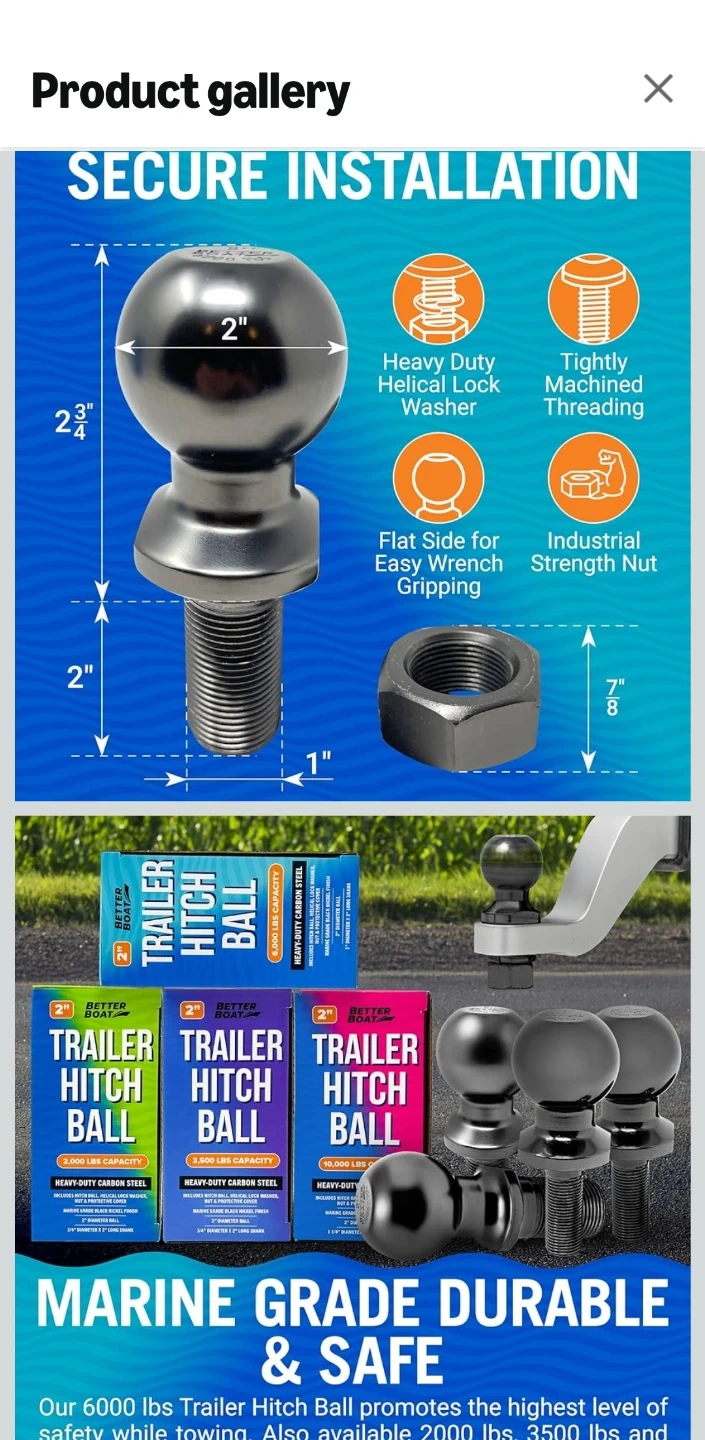 This Better Boat trailer hitch ball is designed for heavy-duty towing.