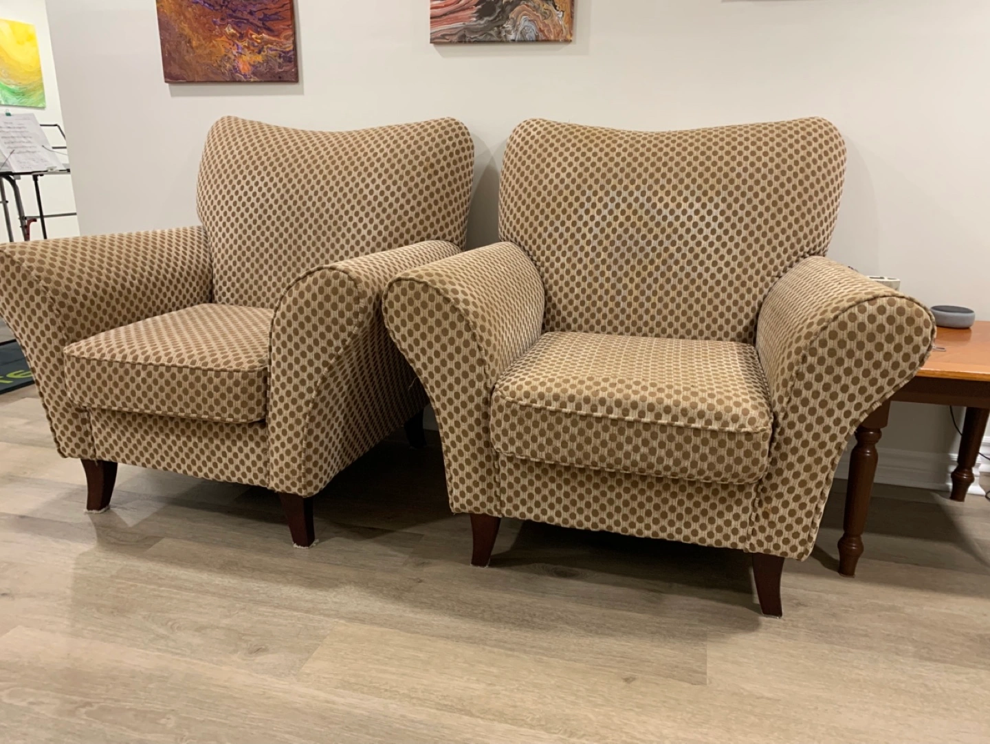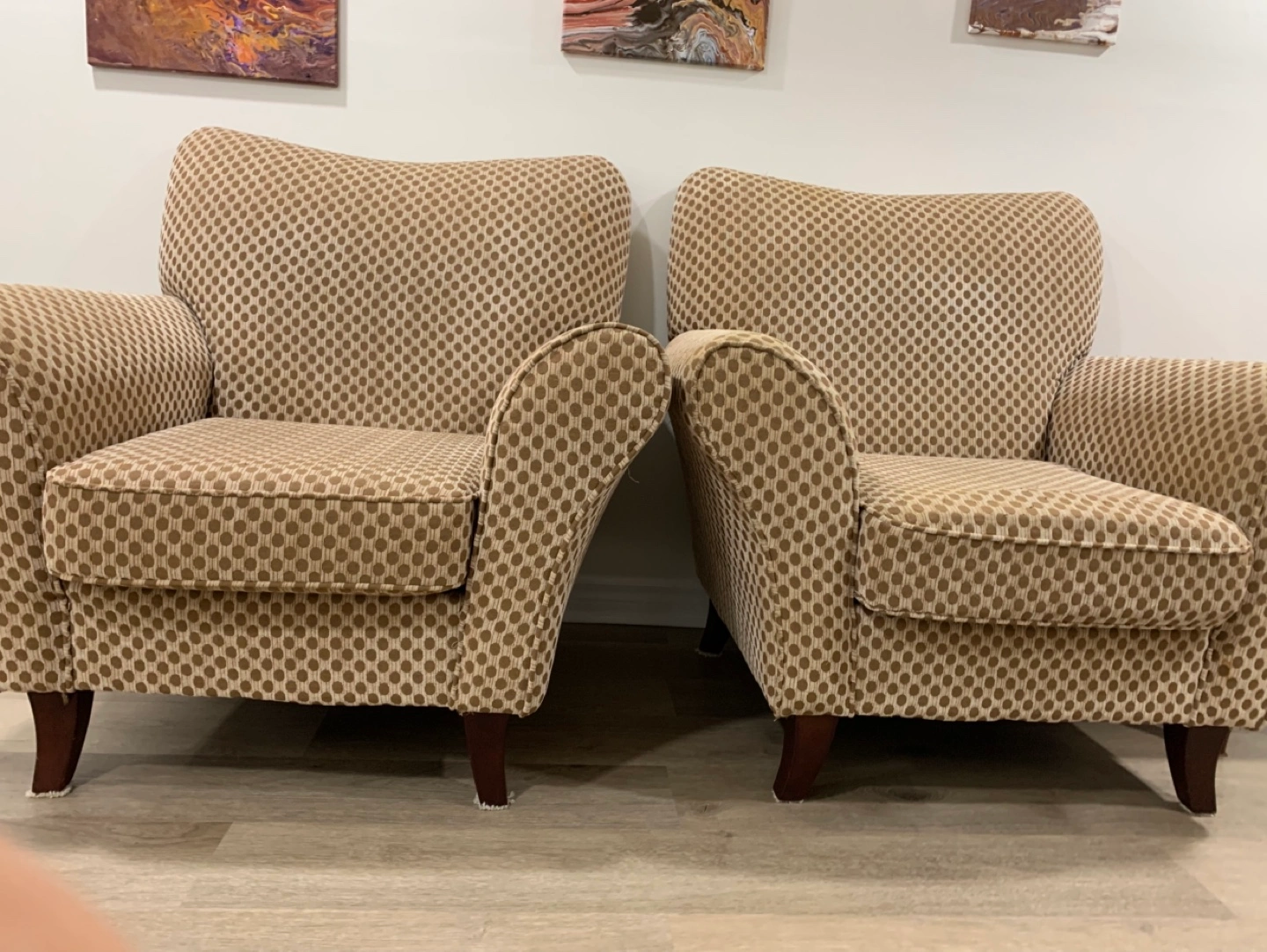 Buy & SellPair of Beige ArmchairsPair of Beige Armchairs$120Two armchairs, beige fabric with brown polka dot pattern. Wooden legs. Good condition. Comfortable and stylish.ConditionGoodWHERE TO MEETCheck LocationView MapSELLERBrianBristol574 reviews2 chats·1 favorites·84 viewsSEND CHAT TO SELLERHi Brian! I’m interested in your listing.Hi Brian! I’m interested in your listing.Get the Karrot app to chatSign In to chat