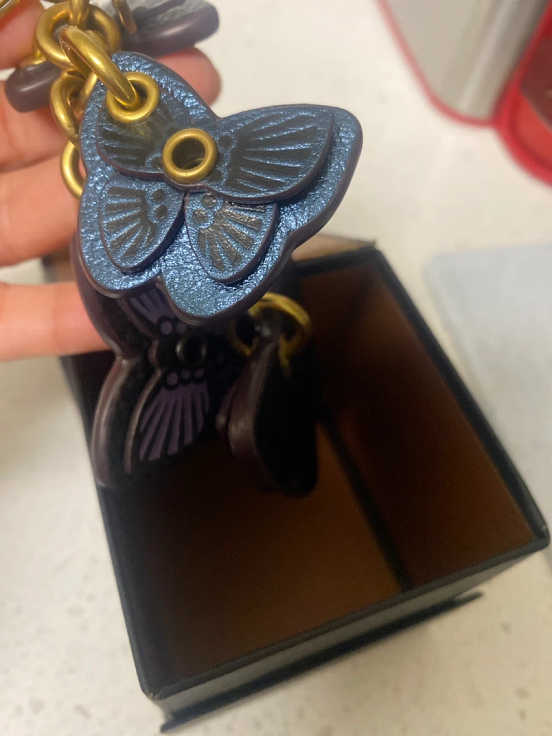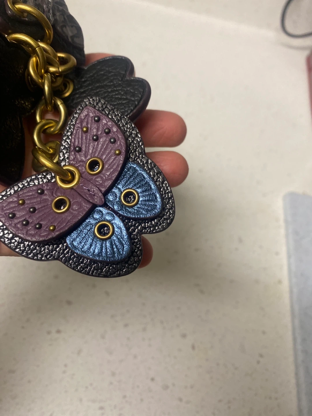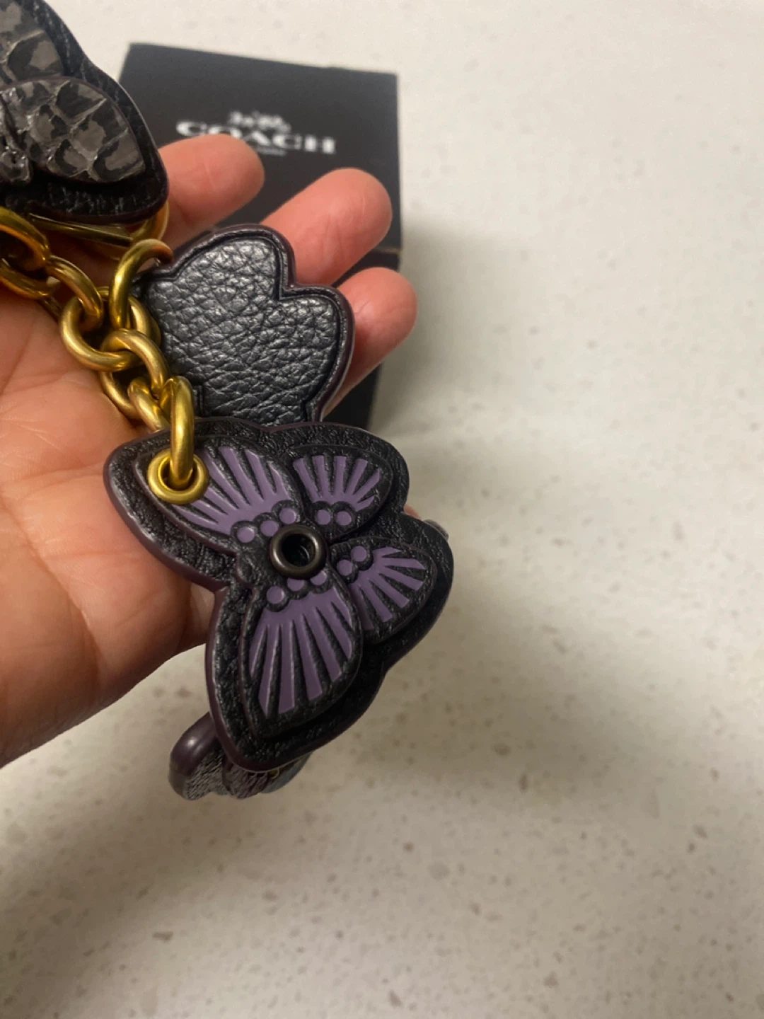 Here's a cute Coach butterfly charm key chain! It features multiple butterflies in different colours and textures. The box is included!
