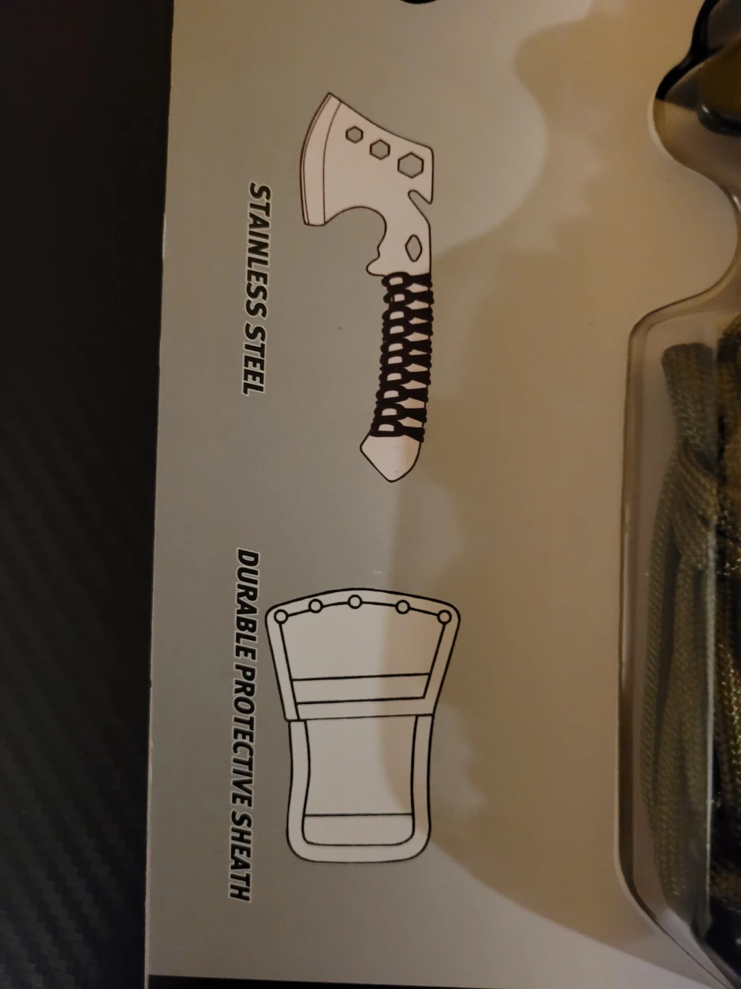 This 10-inch fixed axe features a stainless steel multi-purpose head and a paracord handle. It comes with a durable protective sheath. This tool is handy for camping or outdoor tasks! The price is firm need them gone only a few left