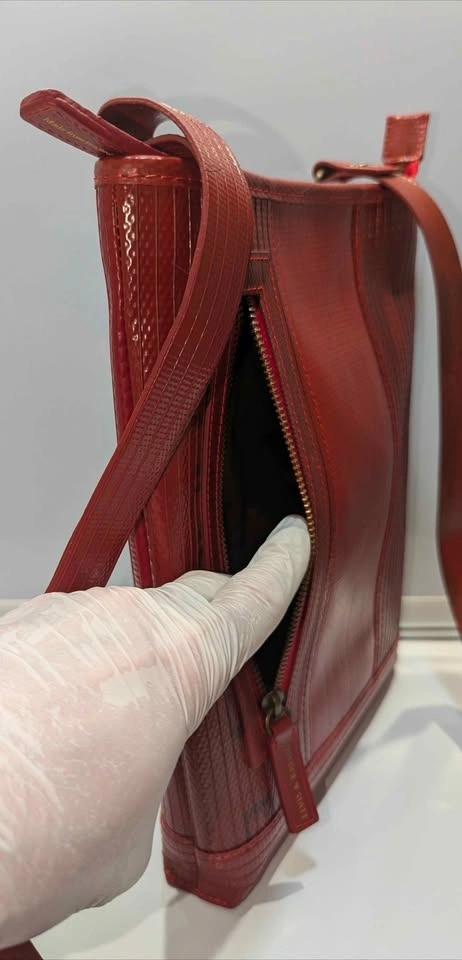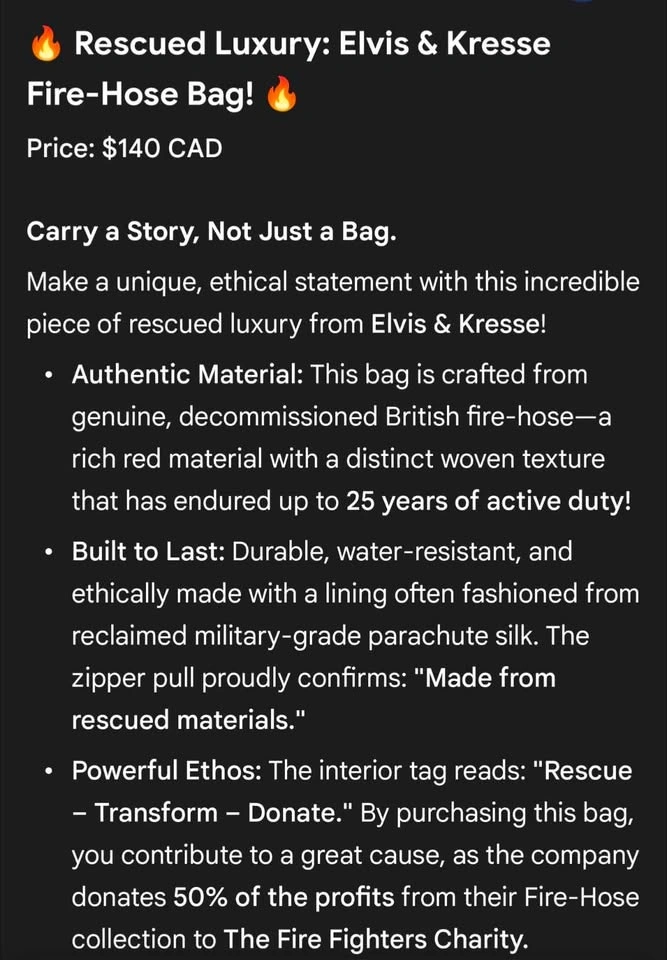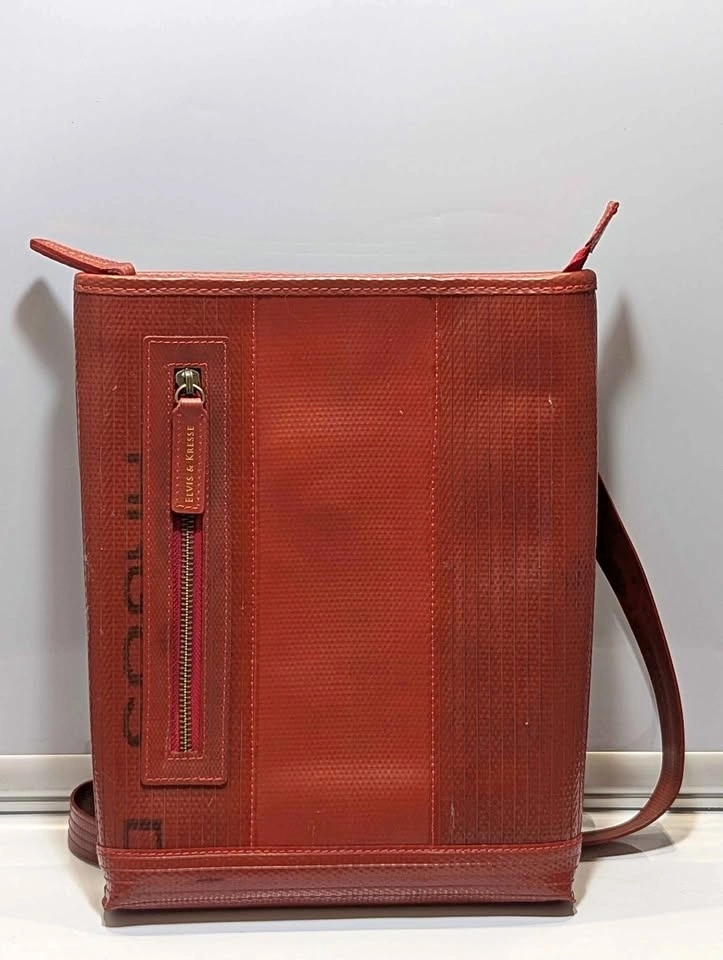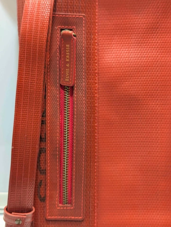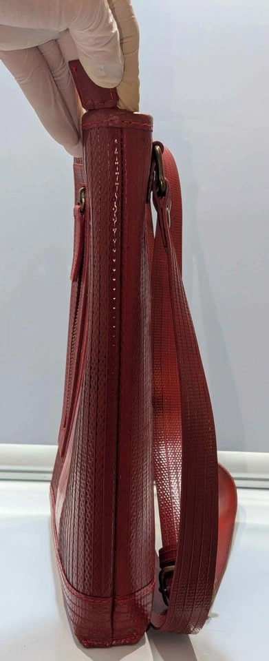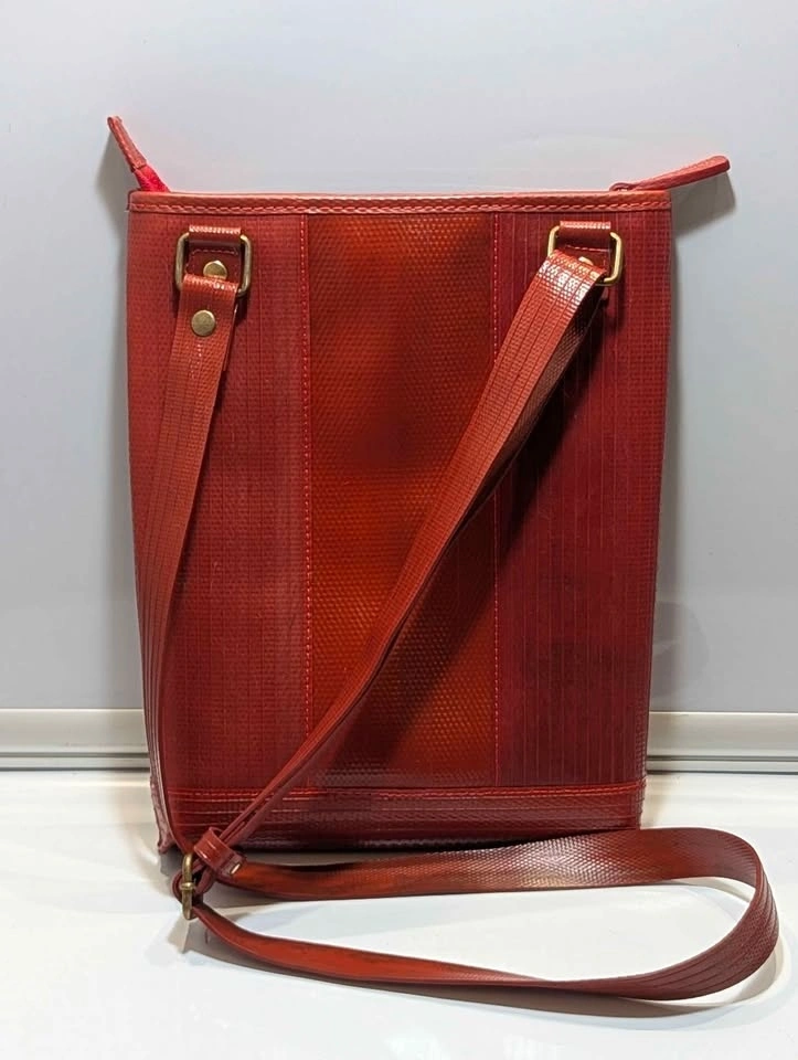 Authentic Material: This bag is crafted from genuine, decommissioned British fire-hose—a rich red material with a distinct woven texture that has endured up to 25 years of active duty!