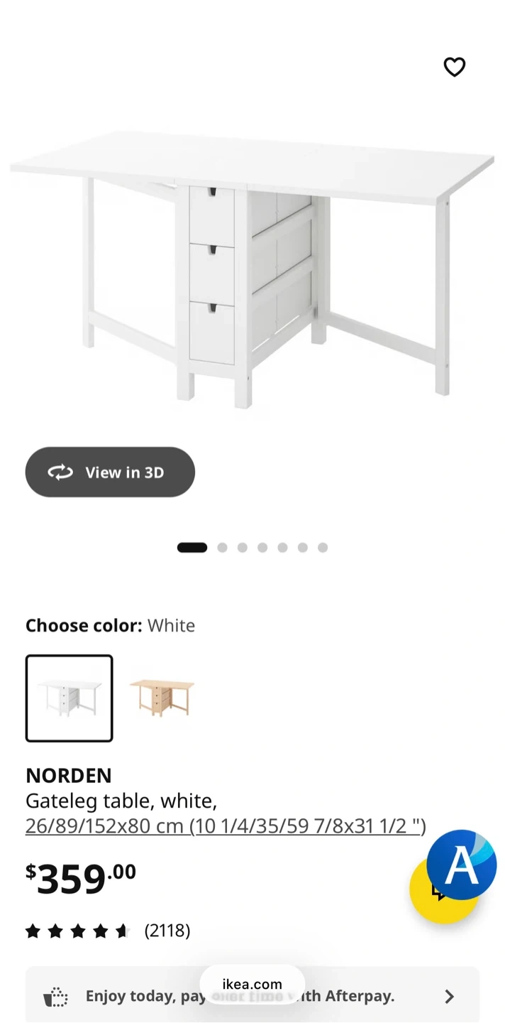 Buy & SellTable- IKEA NORDEN Gateleg - WhiteTable- IKEA NORDEN Gateleg - White$186This is an IKEA NORDEN gateleg table in white. It has 6 drawers for storage. Used like new. Pick up onlyConditionLike newWHERE TO MEETProspectView MapSELLERChristinaBlakeley100 reviews0 chats·1 favorites·42 viewsSEND CHAT TO SELLERHi Christina! I’m interested in your listing.Hi Christina! I’m interested in your listing.Get the Karrot app to chatSign In to chat