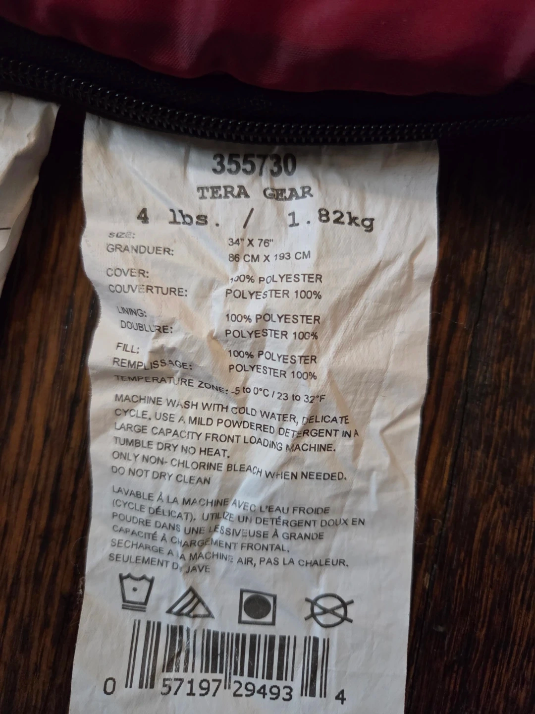 Excellent condition Tera Gear Sleeping Bag (Model 355730). Rated for 0 °C / 32 °F comfort and -5 °C / 23 °F lower limit, making it perfect for spring, summer, and early fall camping.