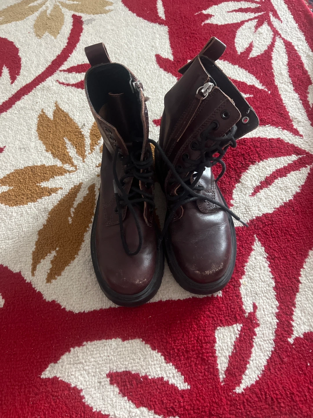 These brown leather boots from Zara feature a lace-up front and a side zipper for easy on and off. They're a size 33, perfect for little feet. The durable sole is ready for everyday adventures!