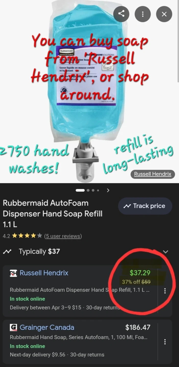 No more need to touch the soap bootle and potentially spread jerms and constantly disinfecting the bottle. This soap dispenser allows hands free use. You might think the soap refill is expensive, but it's not if you consider that each bag is good for 2750 hand washes!