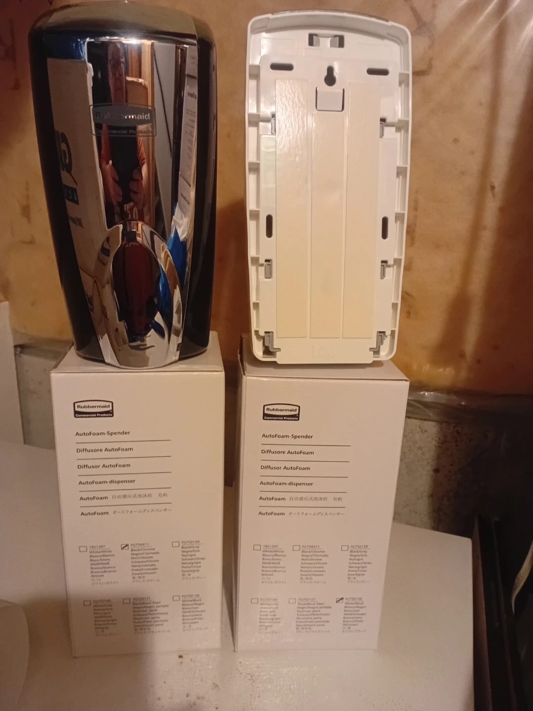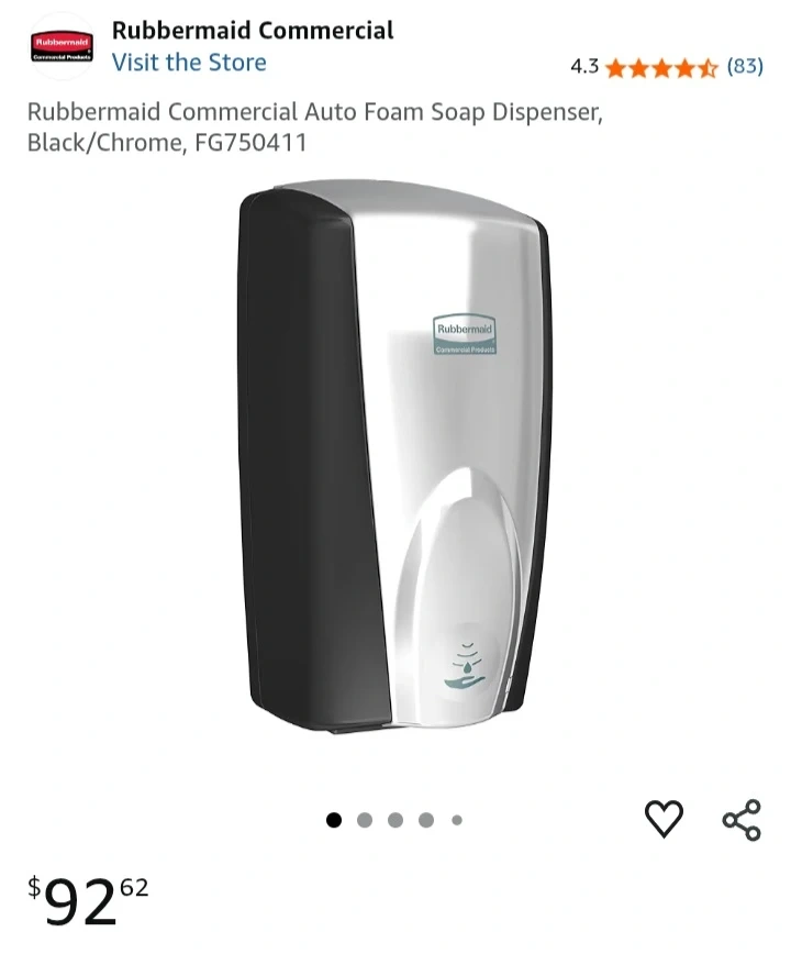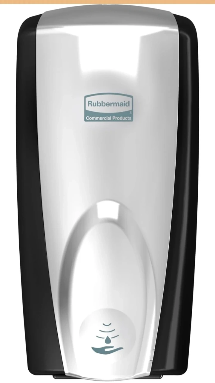 This is a Rubbermaid Commercial auto foam soap dispenser. It's white & black or black & chrome with an automatic sensor. Great for commercial washrooms!