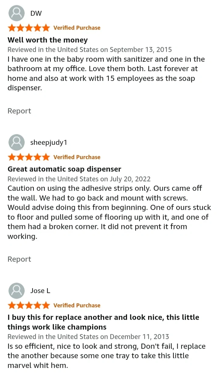 No more need to touch the soap bootle and potentially spread jerms and constantly disinfecting the bottle. This soap dispenser allows hands free use. You might think the soap refill is expensive, but it's not if you consider that each bag is good for 2750 hand washes!