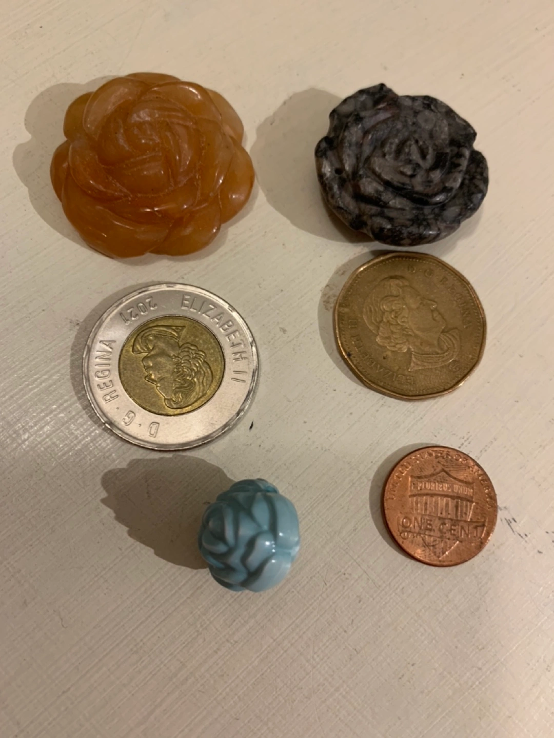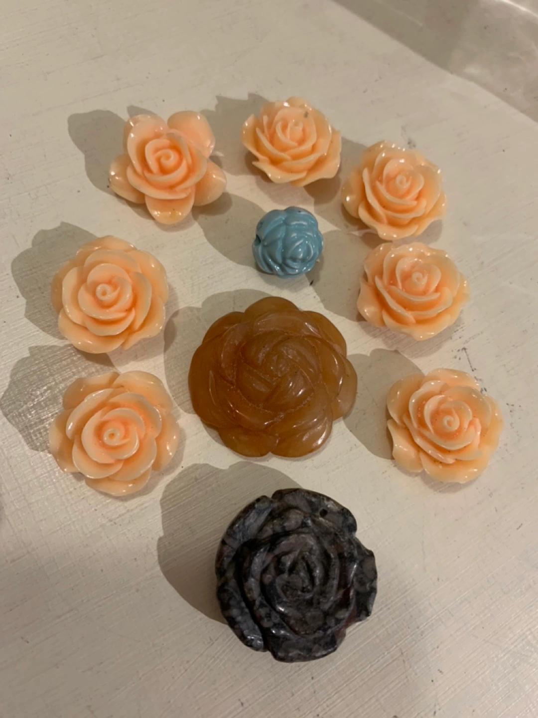 A small lot of glass/resin flowers. Coins for size comparison and not included.