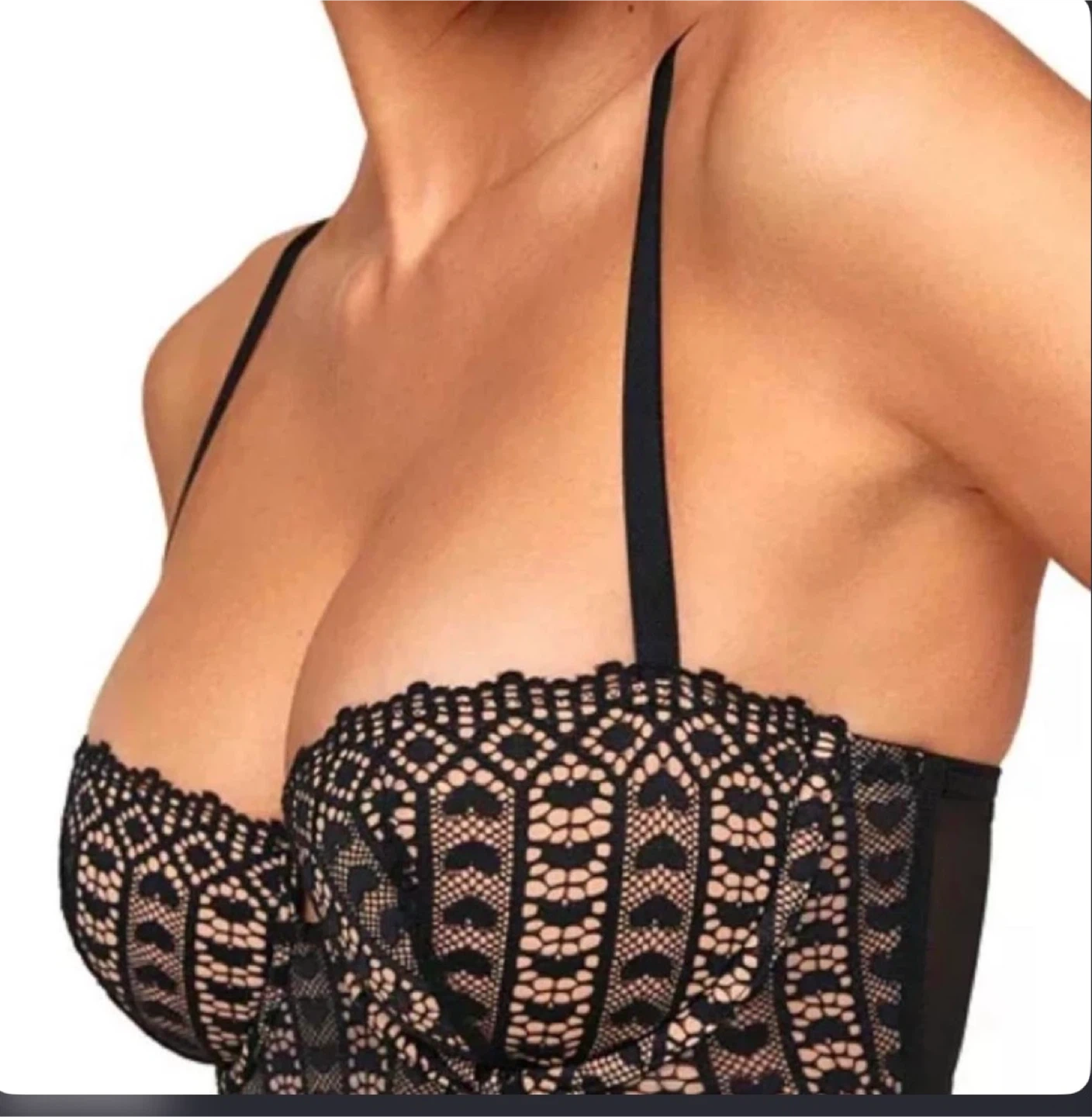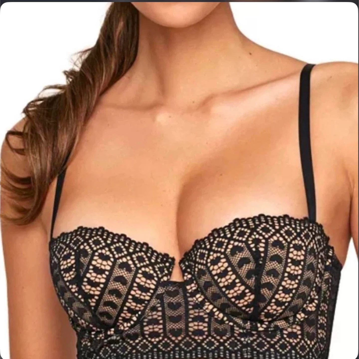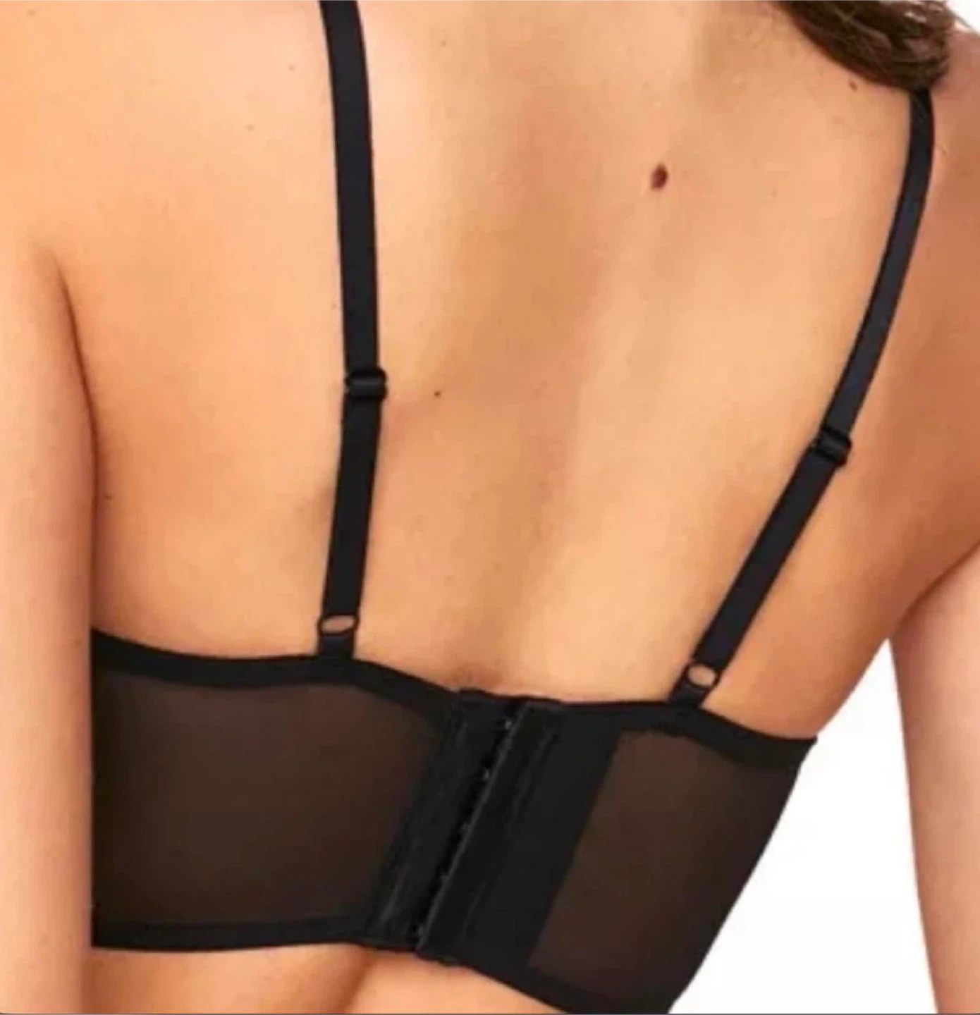 Adore Me black lace balconette bra. Features a sheer mesh band and adjustable straps. Lace overlay provides intricate detail. This elegant black lace bralette offers a perfect blend of comfort and style. Ideal for everyday wear, it features intricate lace detailing for a sophisticated look. New without tags.Never worn.