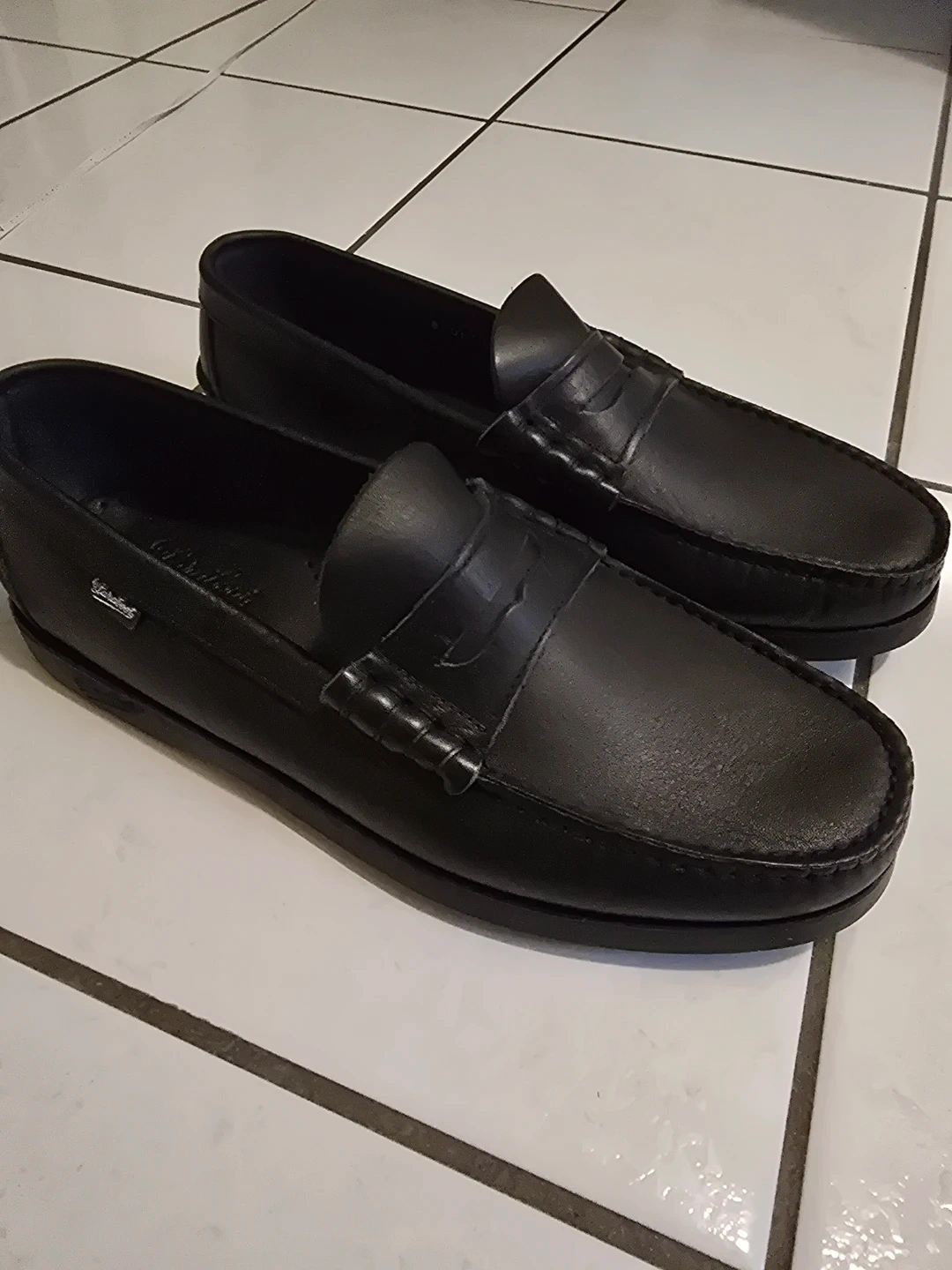 Classic black leather loafers by Paraboot. These are Coraux Loafers Leather material.