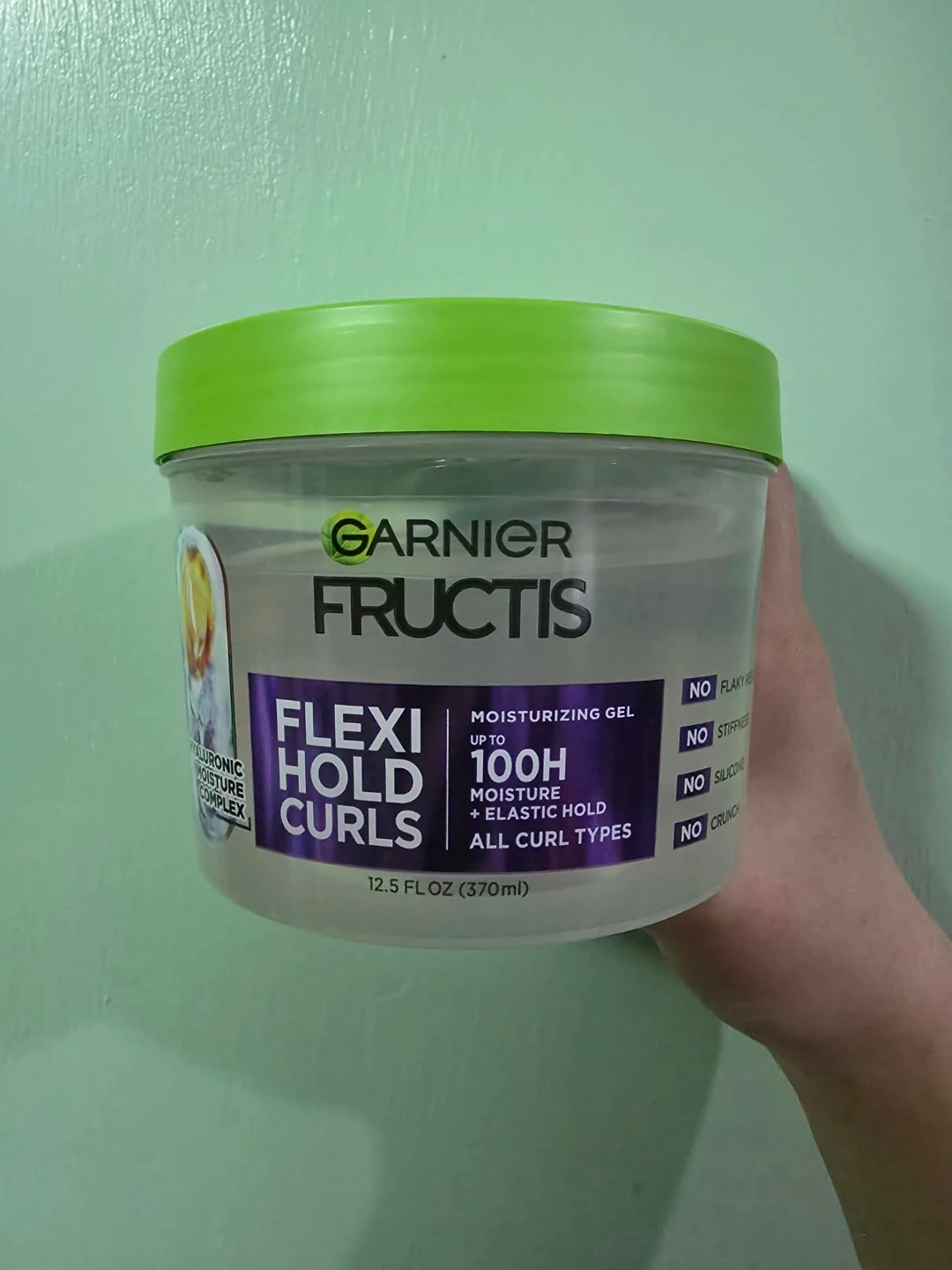 NEW! This Garnier Fructis Flexi Hold Curls Moisturizing Gel offers up to 100H moisture and elastic hold for all curl types. It's formulated with Hyaluronic Moisture Complex and provides liquid styling with flexible hold. The gel is formulated without silicones, drying alcohols, mineral oils or artificial colorants. 12.5 FL OZ.