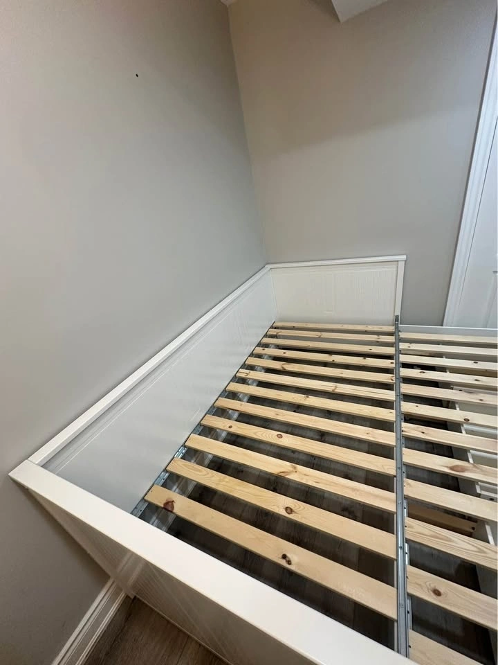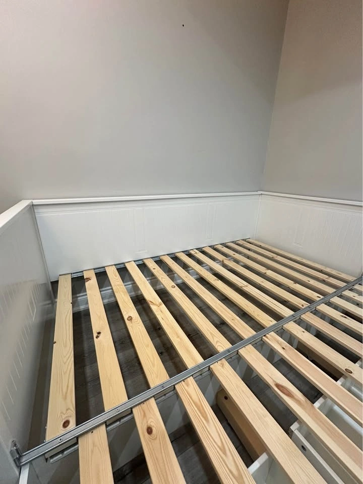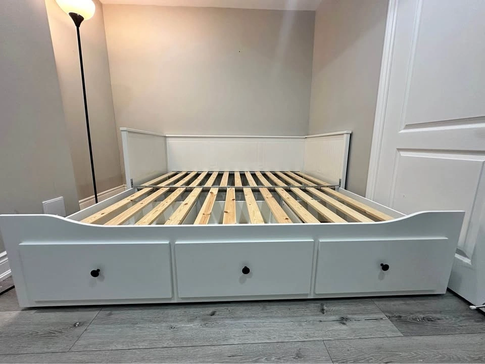 If the ad is up, it is still available. This daybed can easily pull out to become a double bed. It has three large drawers for storage. Used rarely for about 5 months. Selling as I am moving out. Used in a clean, pet-free home. Pick up near Frescho in Milton. Frame only, mattresses not included.