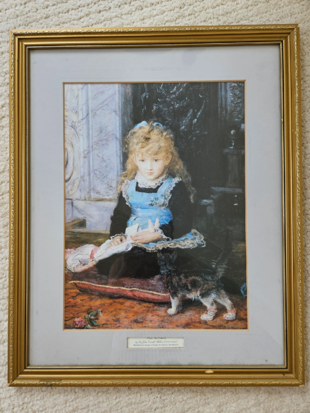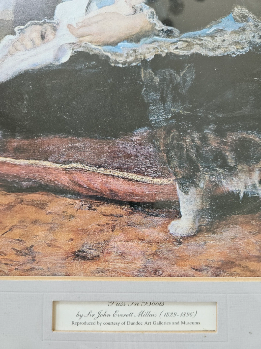 Framed print of "Puss In Boots" by Sir John Everett Millais (1829-1896). Reproduced courtesy of Dundee Art Galleries and Museums.