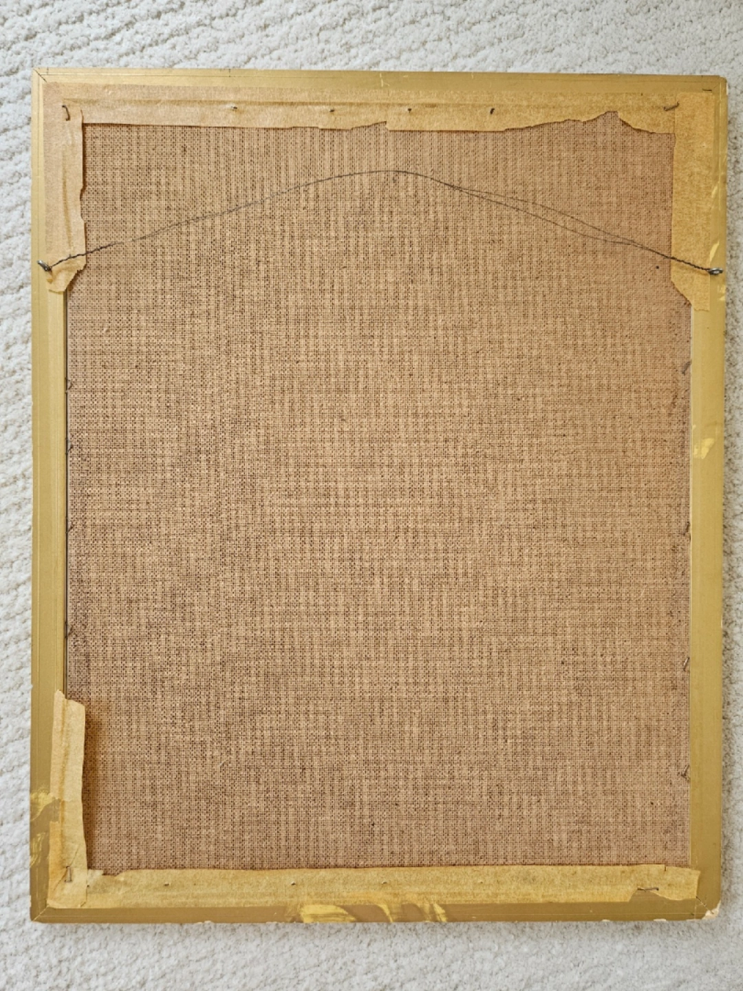 Antique Art Print in Gold Frame "Puss In Boots" with girl