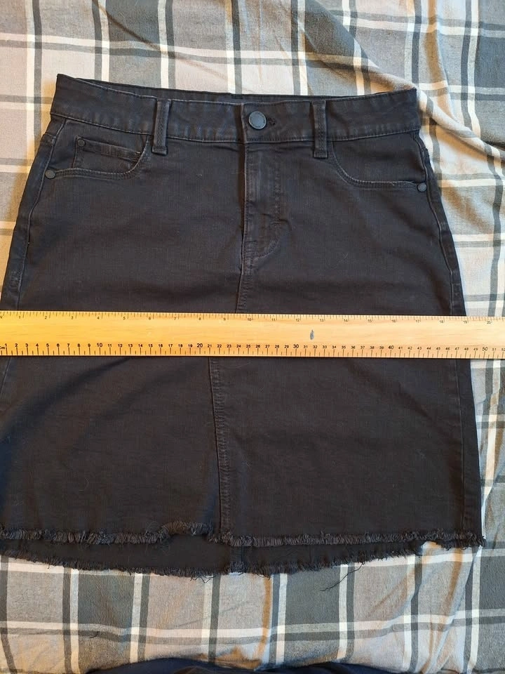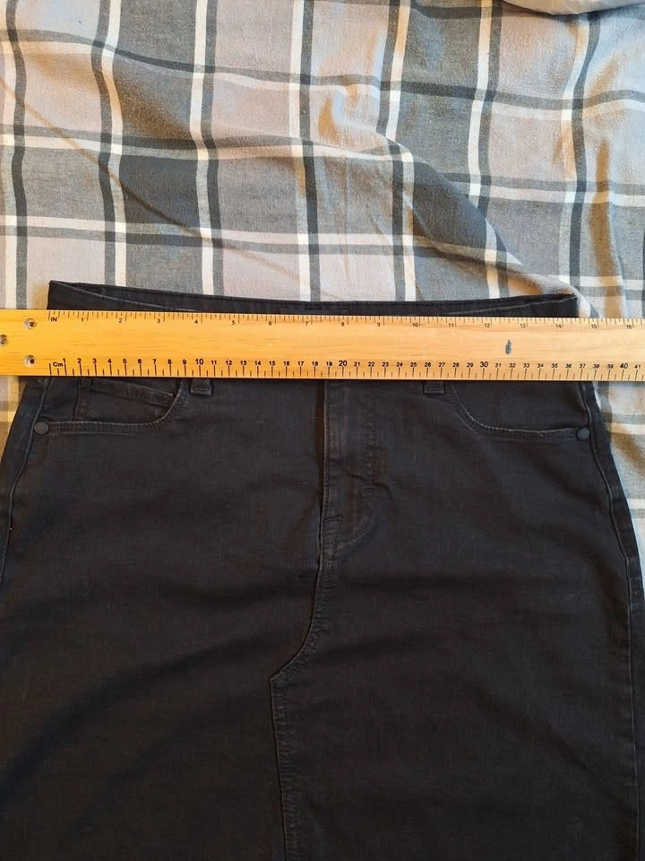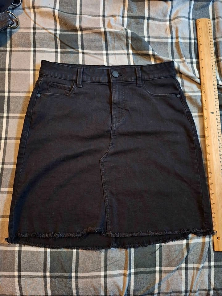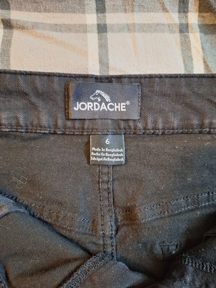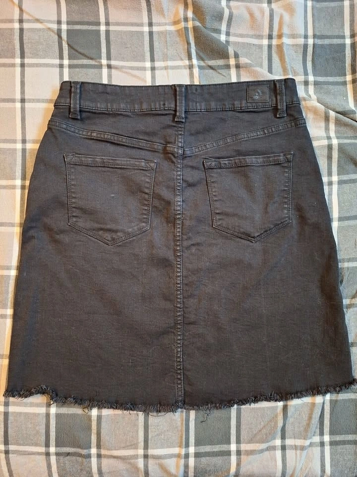 The color is most accurate in the first pic. The upper button and rivets are all matte black. The size says 6, but it fits larger with stretch. I'm usually a 10-12 and it fits me great. Measurements are included in the pictures! I'm moving and happy to bundle.