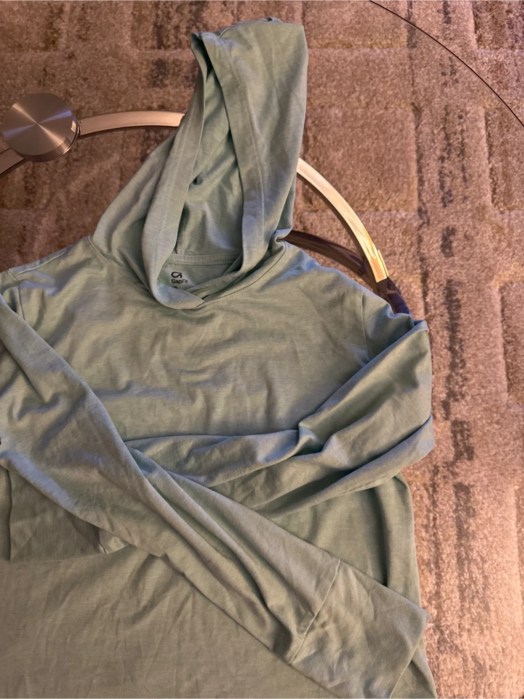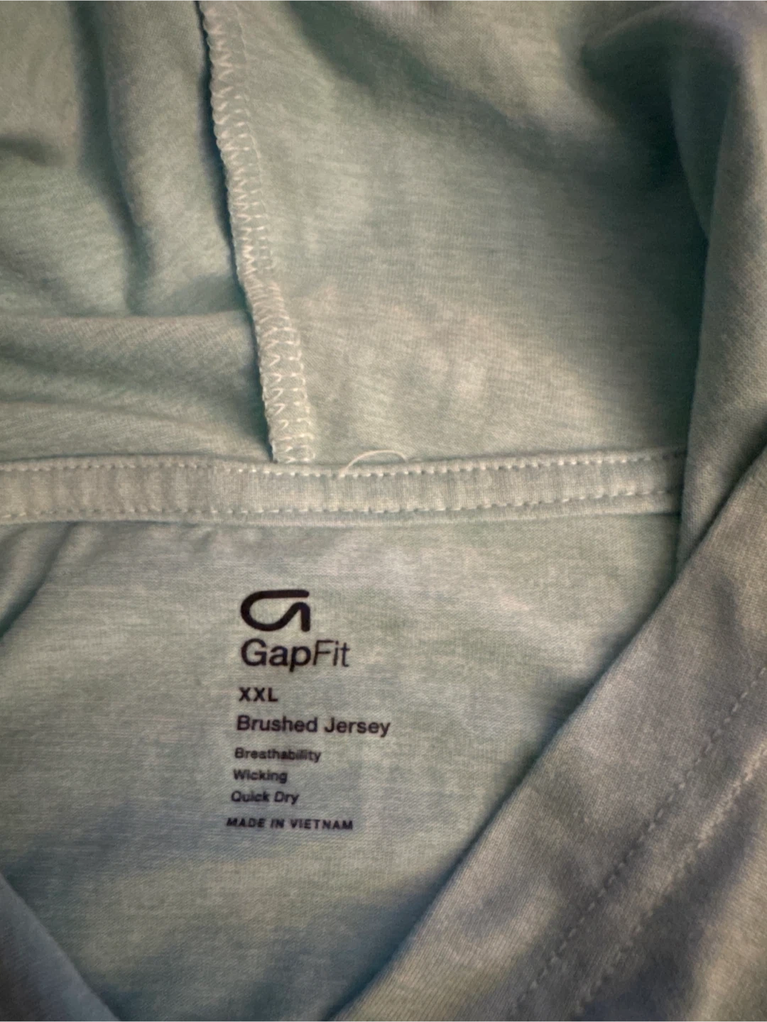 GapFit hoodie and matching pants set. Brushed jersey material. Breathable and quick-dry fabric. Made in Vietnam.