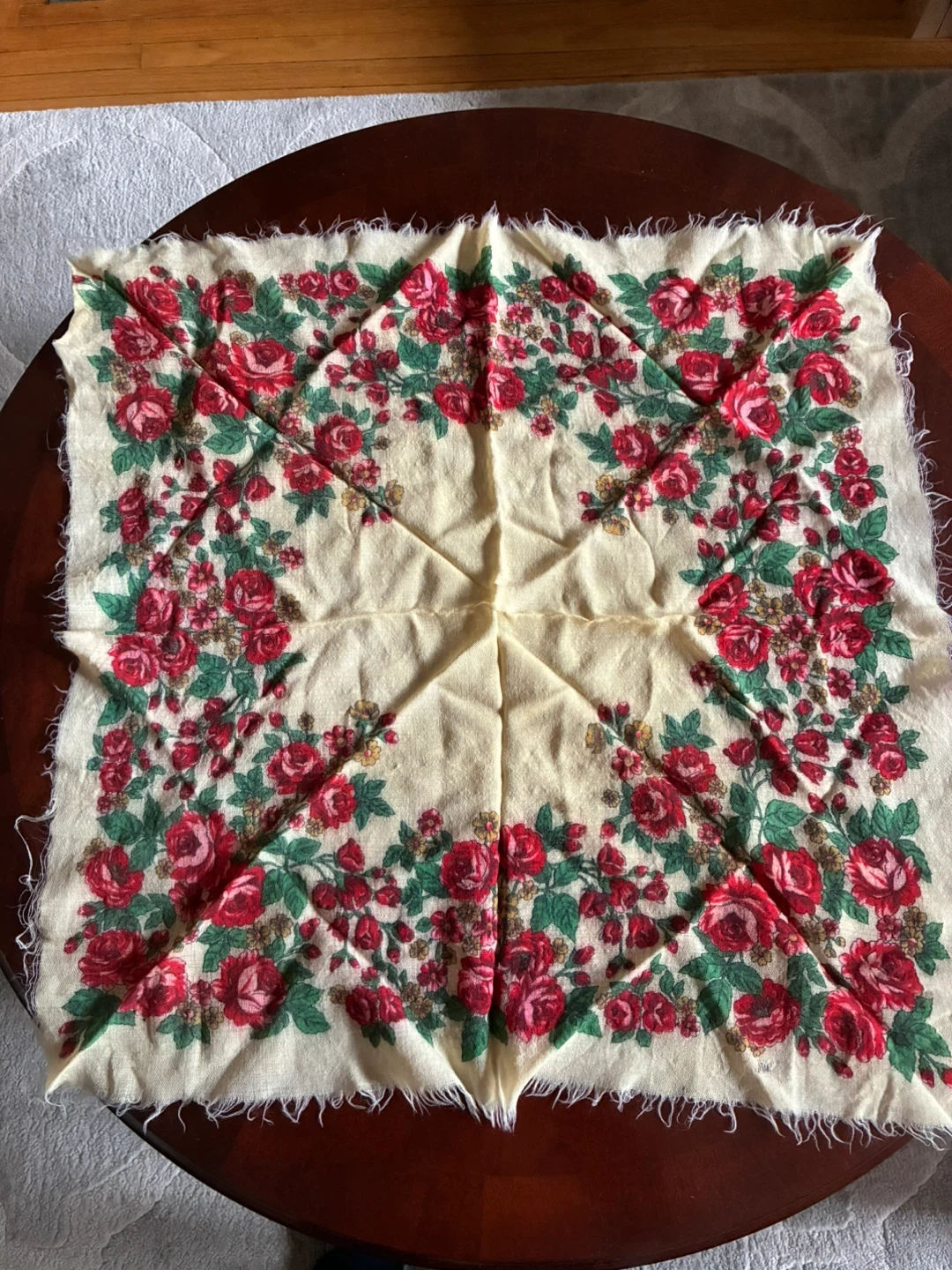 24 x 24 inch roses wool shawl, Babushka flower scarf, Vintage folk headscarf for women