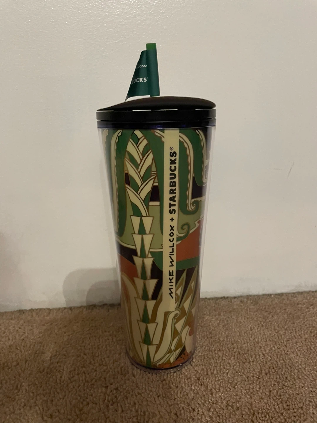 Starbucks tumbler designed in collaboration with artist Mike Willcox. It features an Art Deco-inspired design. This reusable cup is perfect for your favourite beverages on the go!