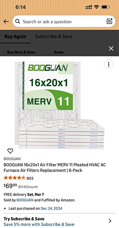 Brand New BOOGUAN Air Filters – 16x20x1 (MERV 11) – 4 Pack