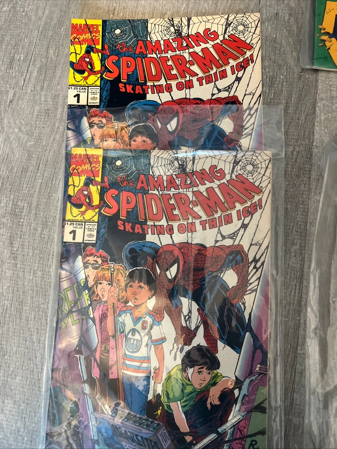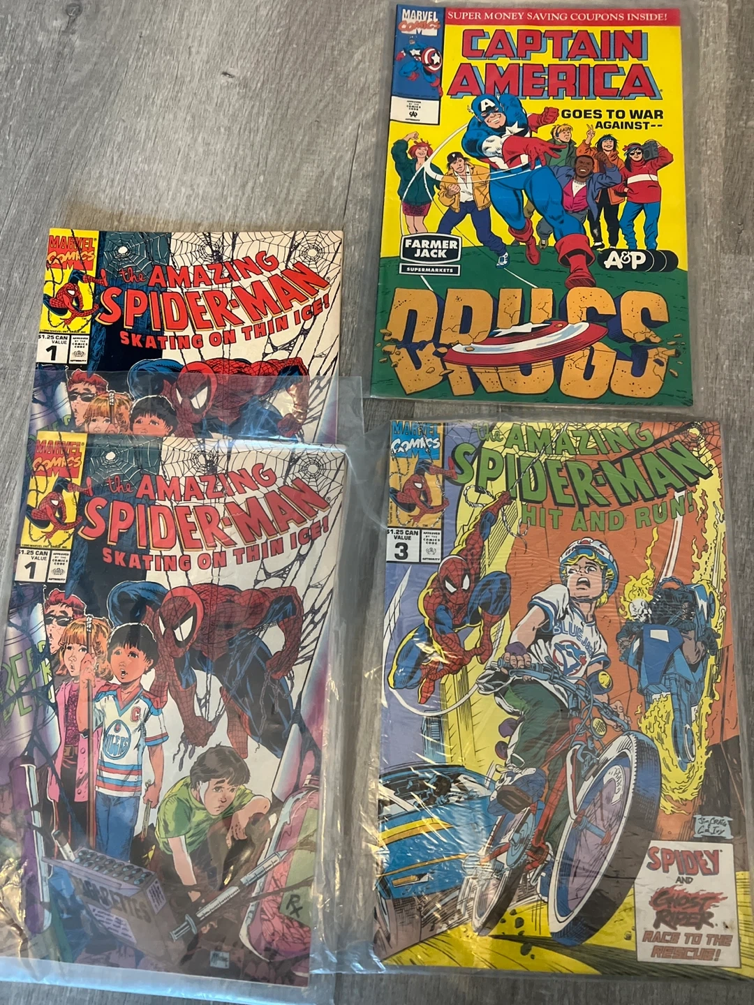 Collection of Marvel comic books including Captain America #Goes To War Against -- and The Amazing Spider-Man #1 Skating On Thin Ice (2 copies) and #3 Hit and Run. Published by Marvel Comics.