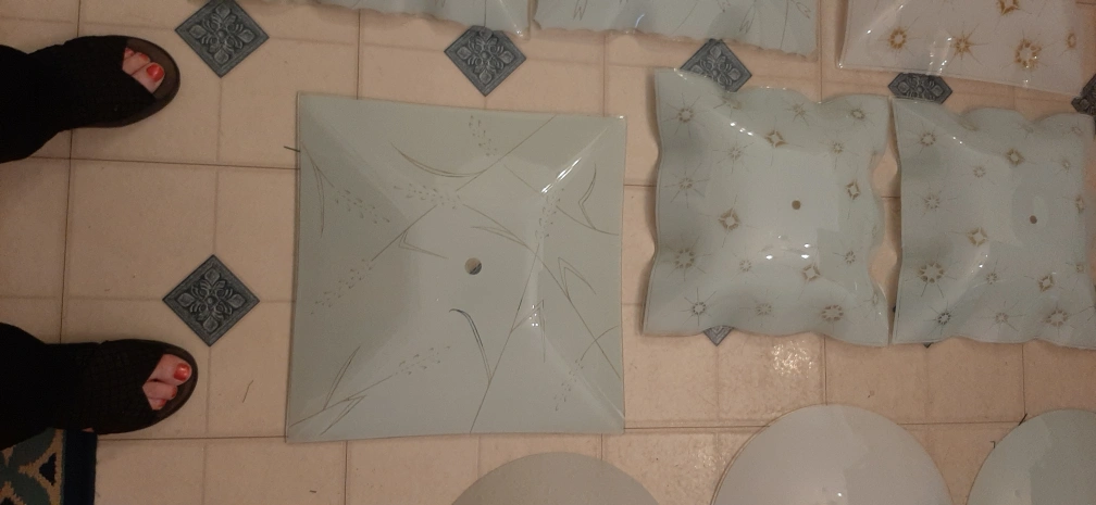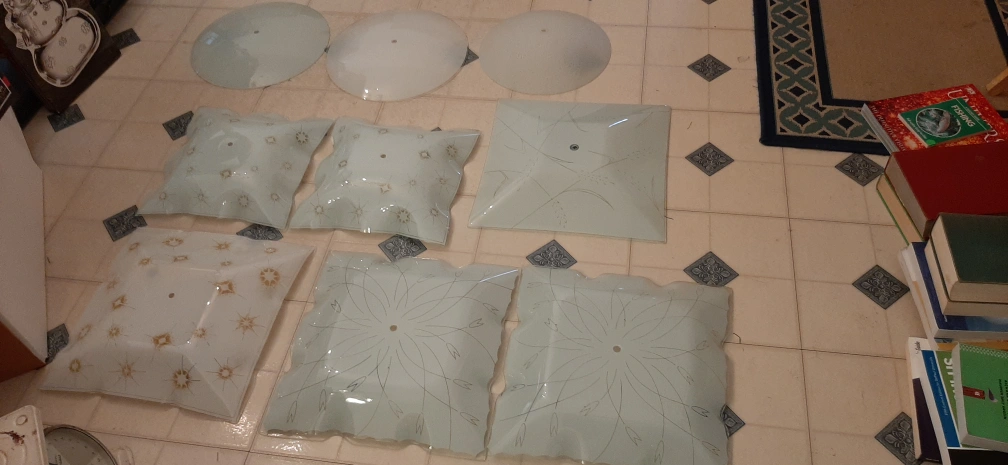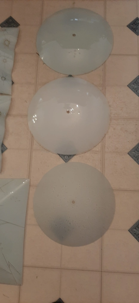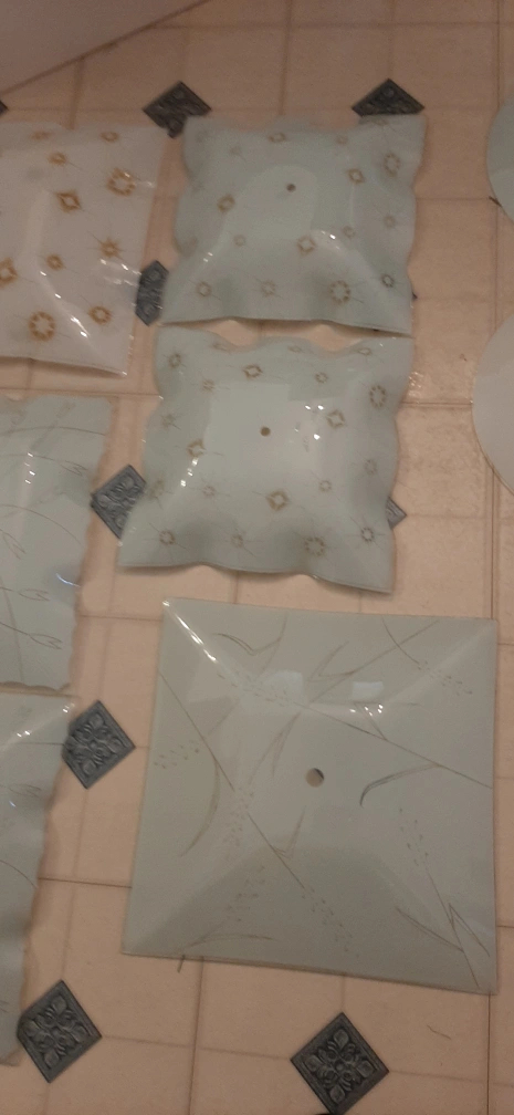 Used ceiling light covers. There are various shapes and designs, including square and round options. Perfect for replacing damaged covers or updating your lighting fixtures!